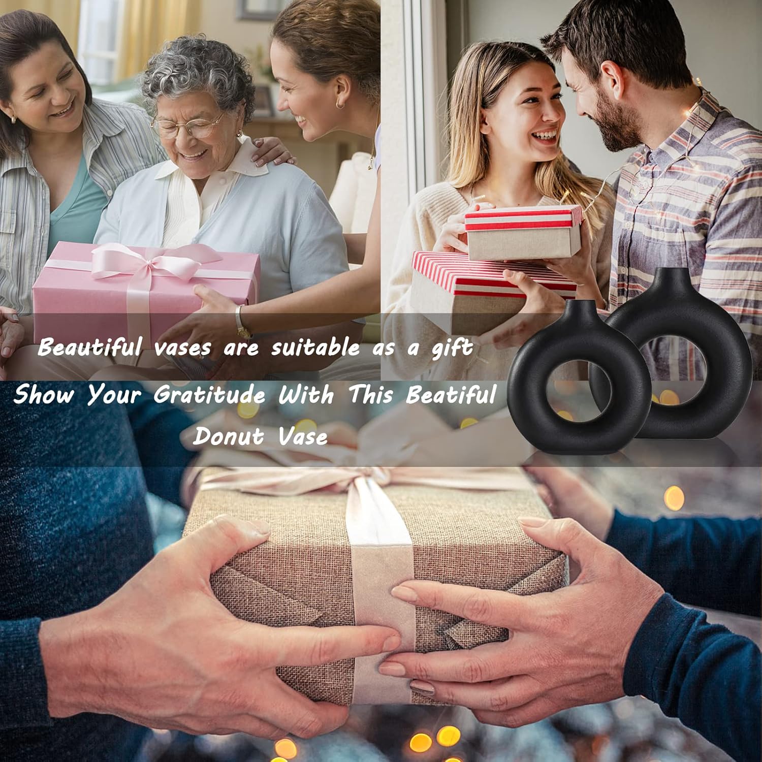 - 🌷【UNIQUE MODERN DESIGN 】– If you are tired of those dull and boring designs, then you will definitely be attracted by these beautiful hollow design black ceramic vases for home décor. The donut design makes the flower vases unique and stylish; you can see through the hollow out while enjoying beautiful flowers in the vase, which adds more romance and fashion to your house.