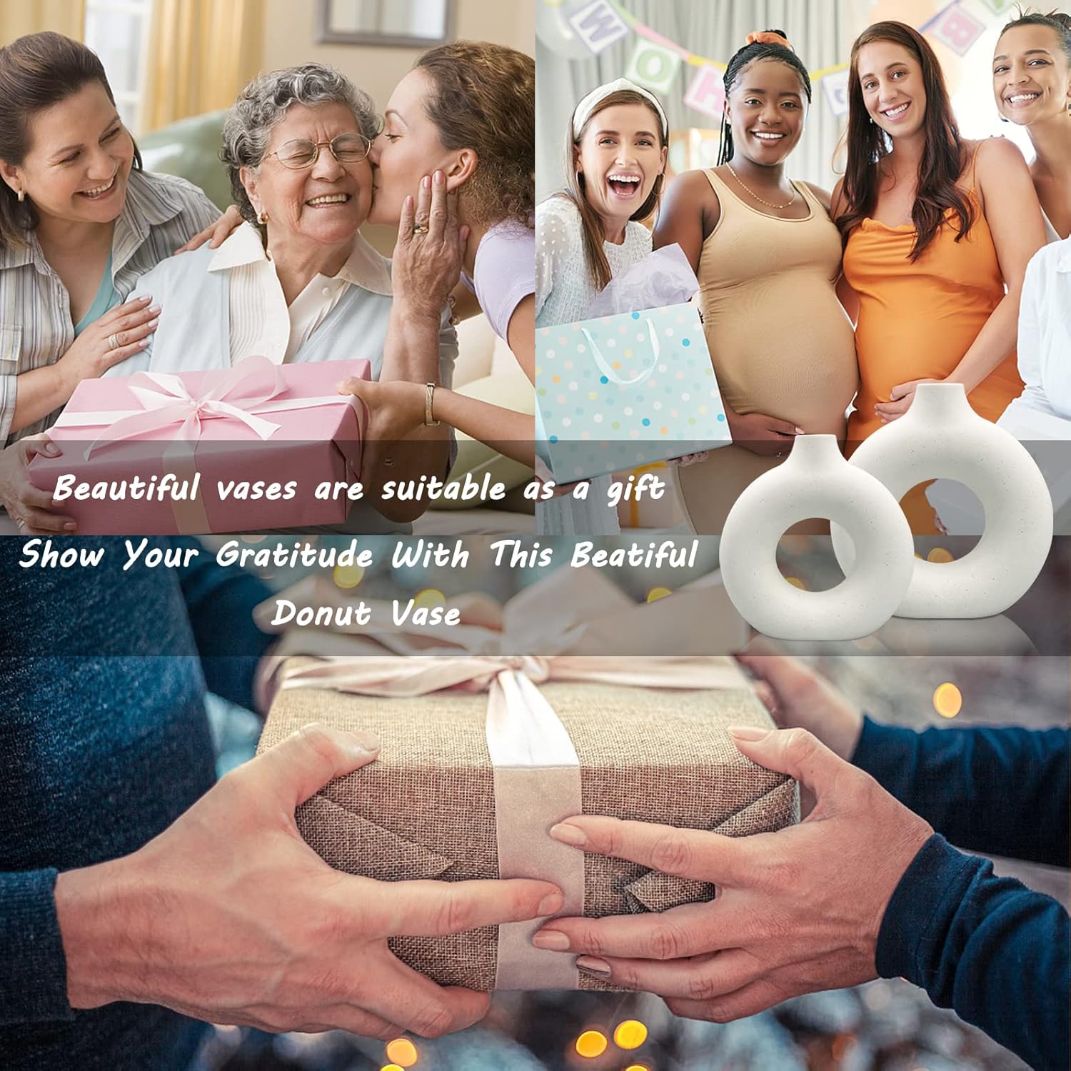 - 🌷【UNIQUE MODERN DESIGN 】– If you are tired of those dull and boring designs, then you will definitely be attracted by these beautiful hollow design white ceramic vases for home décor. The donut design makes the flower vases unique and stylish; you can see through the hollow out while enjoying beautiful flowers in the vase, which adds more romance and fashion to your house.