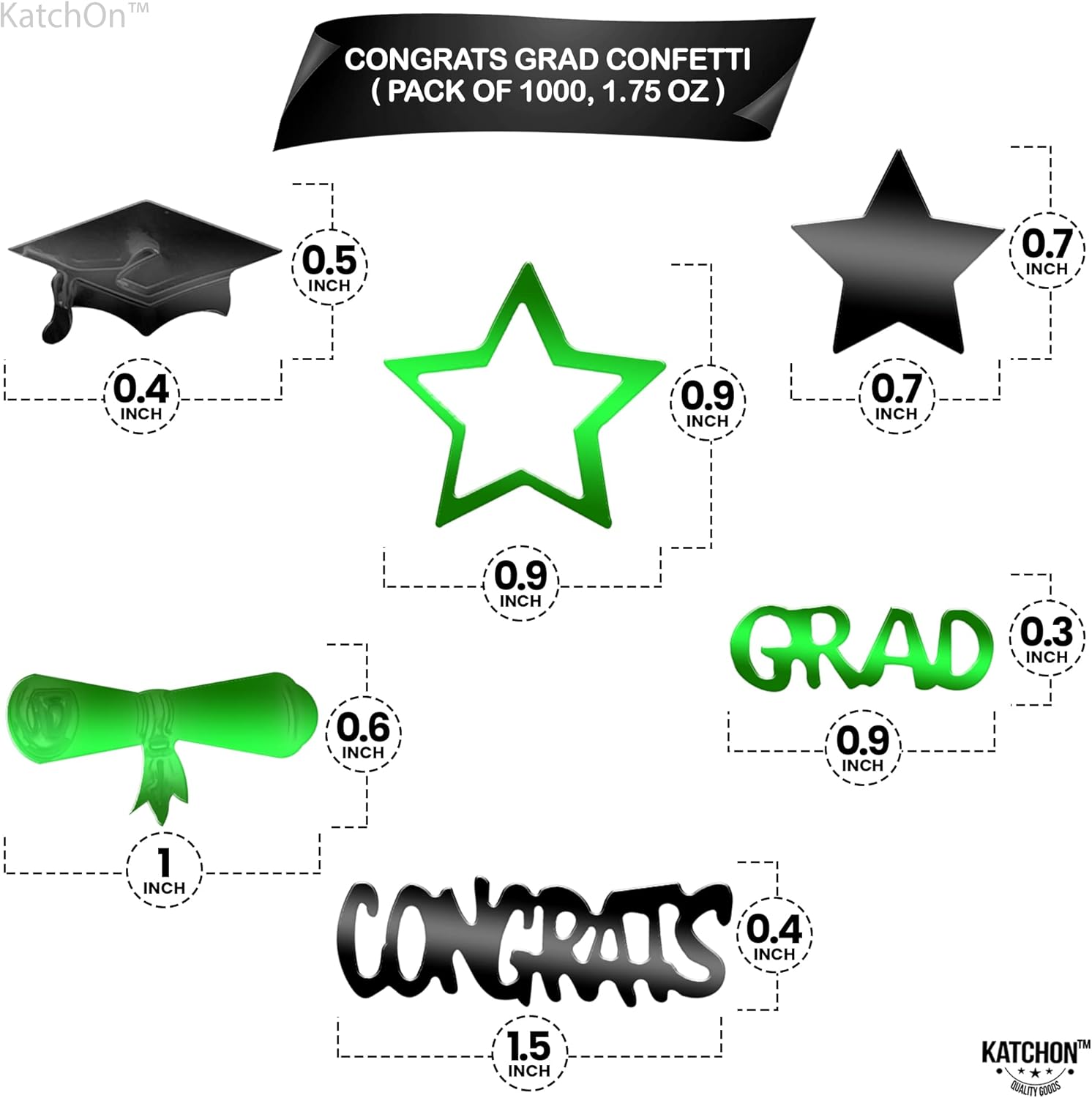KatchOn, Shiny 2025 Congrats Grad Confetti - Pack of 1000 | Green and Black Graduation Confetti Class of 2025 Decorations | Graduation Decorations 2025