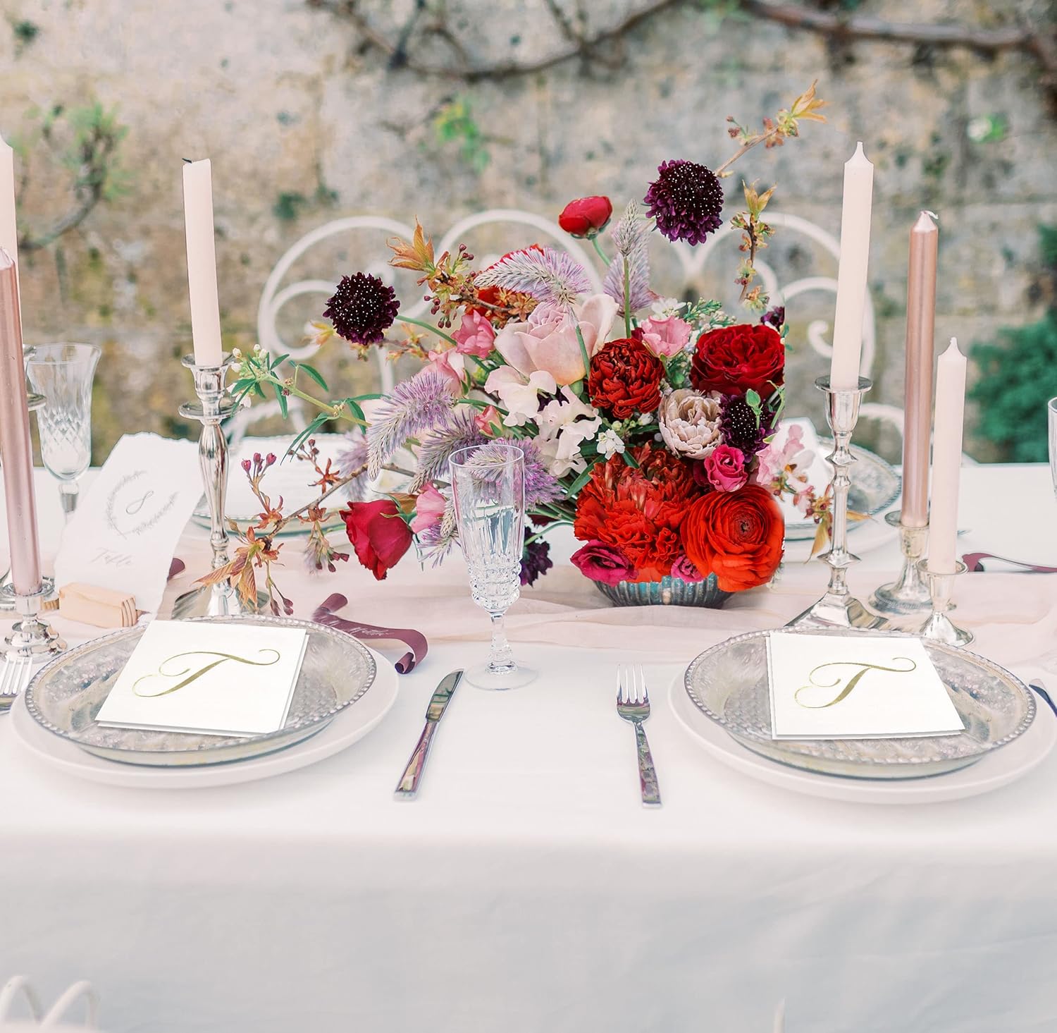 - Monogrammed Cocktail Napkins Serve 100: Gift Boutique square monogram cocktail napkins features the letter T printed in gold foil on white. These napkins will definitely enhance your table and impress your guests. These are essential for providing guests high-end comfort and luxury. Measures: 5" x 5" folded and 10" x 10" unfolded.