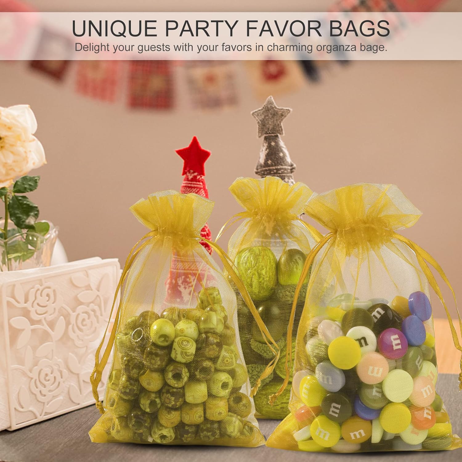 - 🍋【Advantages】 - Compared to other products on the market, our organza bags have been upgraded, touch softly and smoothly, looks more upscale and expensive. More simple and big enough to fill with treats, solve your trouble of pack little stuffs while traveling.