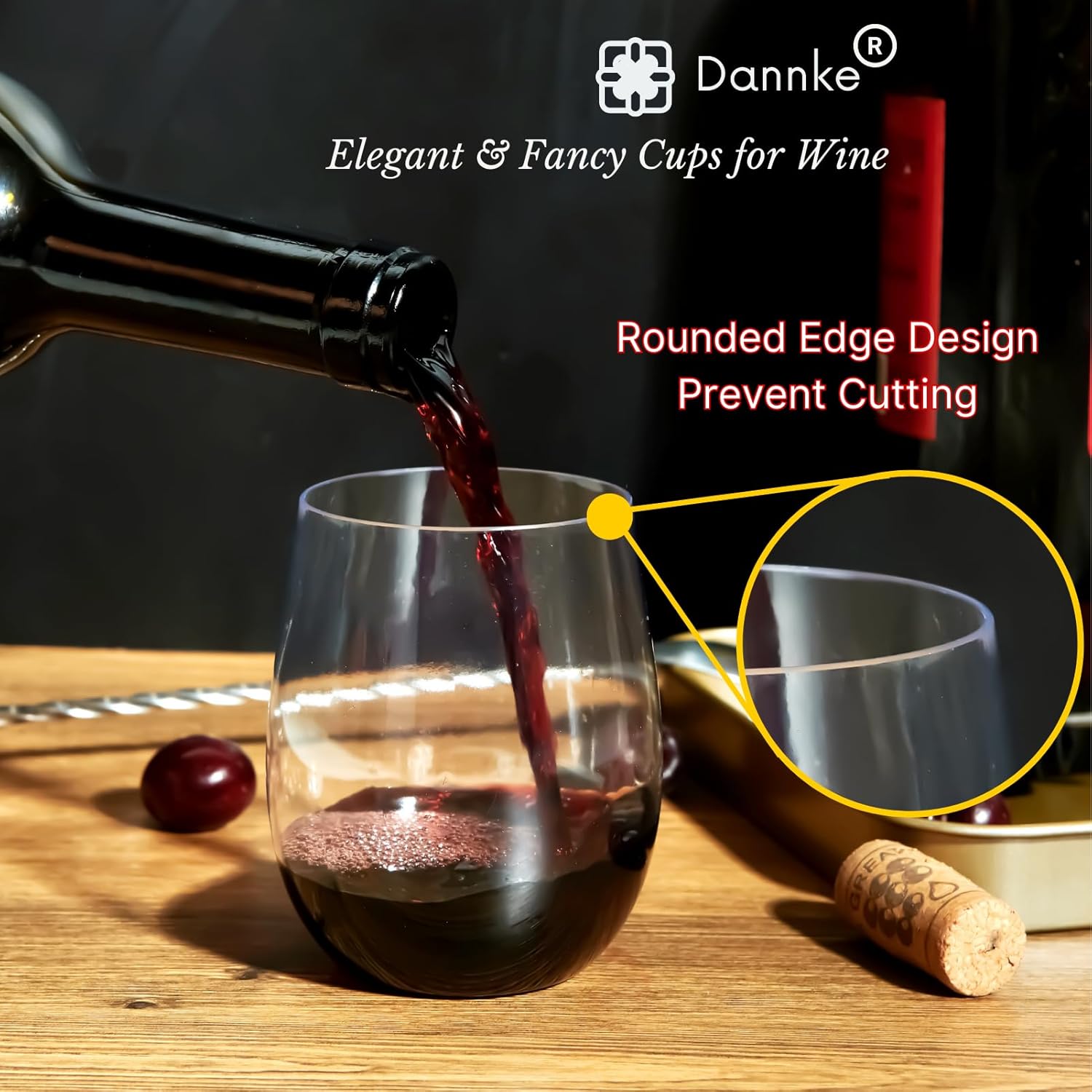 48 Stemless Plastic Wine Glasses - 12oz Clear Disposable Party Cups for Parties - Wine Tumblers