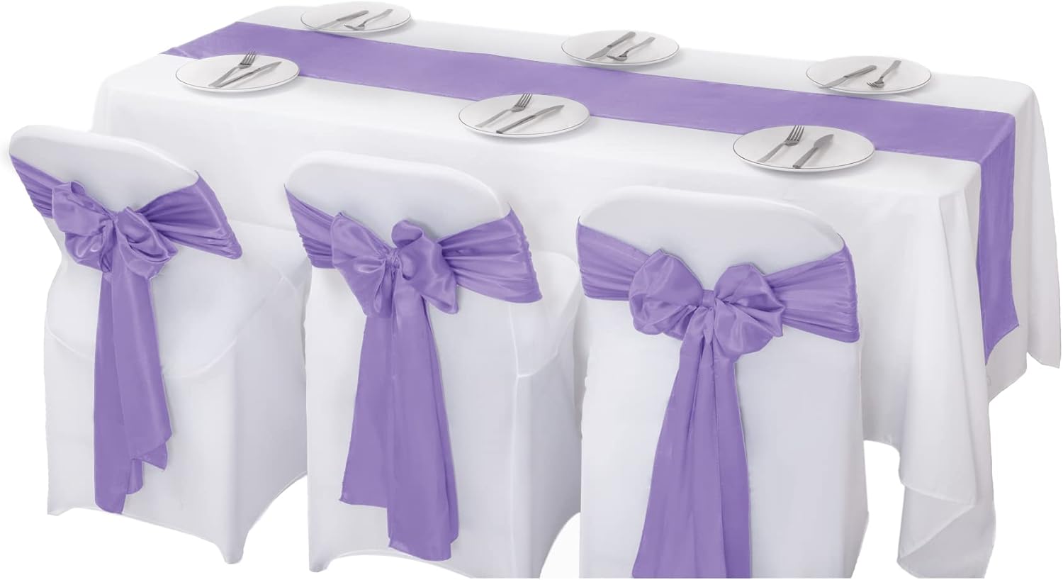 12Pack Table Runner 12 x 108 Inches Satin Silk Table Runner for Wedding, Birthday Party, Banquets, Graduations Decoration, fit Rectange and Round Table-Lavender