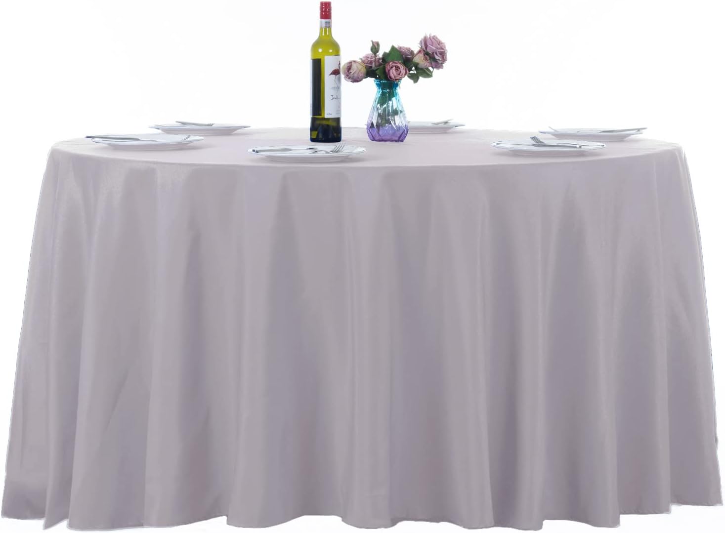 Ascoza 2pack 132 Inch Silver Round Tablecloth in Washable Polyester Fabric for Wedding/Banquet/Restaurant/Parties
