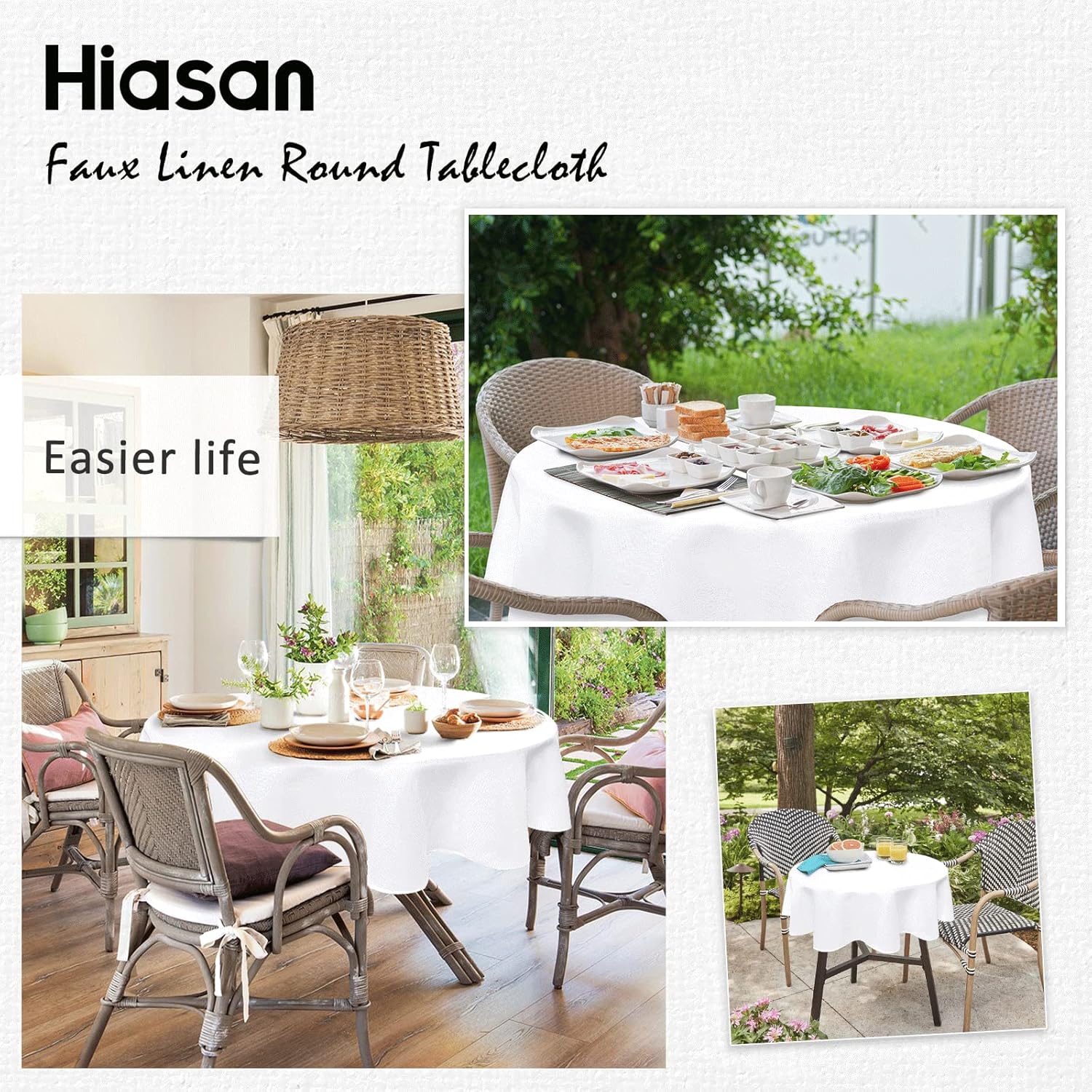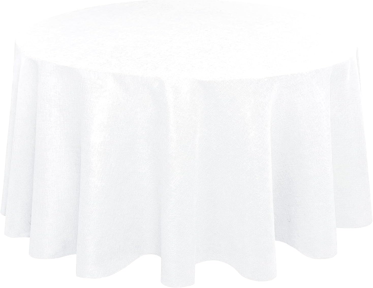 Hiasan Round Linen Tablecloth 120 Inch - Wrinkle and Stain Resistant Washable Polyester Fabric Table Cloth for Dining Room Kitchen Party, White