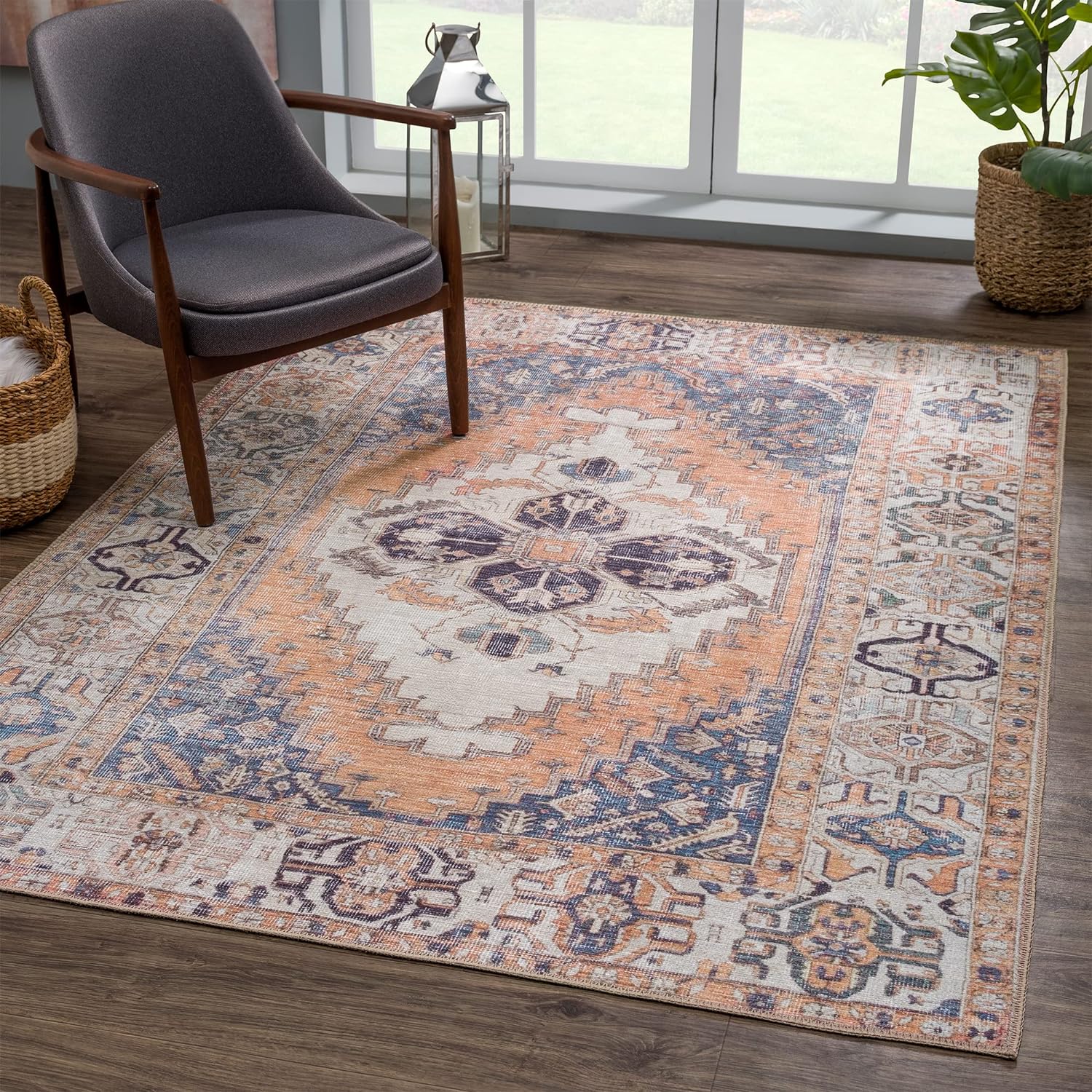 Bloom Rugs Washable 8' x 10' Rug - Orange/Blue/Beige Traditional Area Rug for Living Room, Bedroom, Dining Room, and Kitchen - Exact Size: 8' x 10'