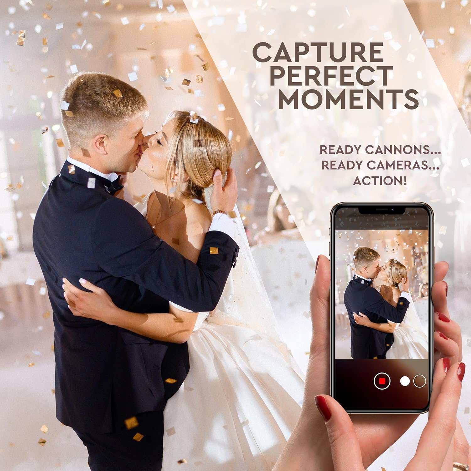 White RICE Paper Confetti Cannon - 16" Rice Paper Biodegradable Party Popper, Compressed Air Popper, Loud Pop, For Wedding Confetti Send Off/Sparklers, Wedding Supplies & Decorations, Shoot Up to 40ft