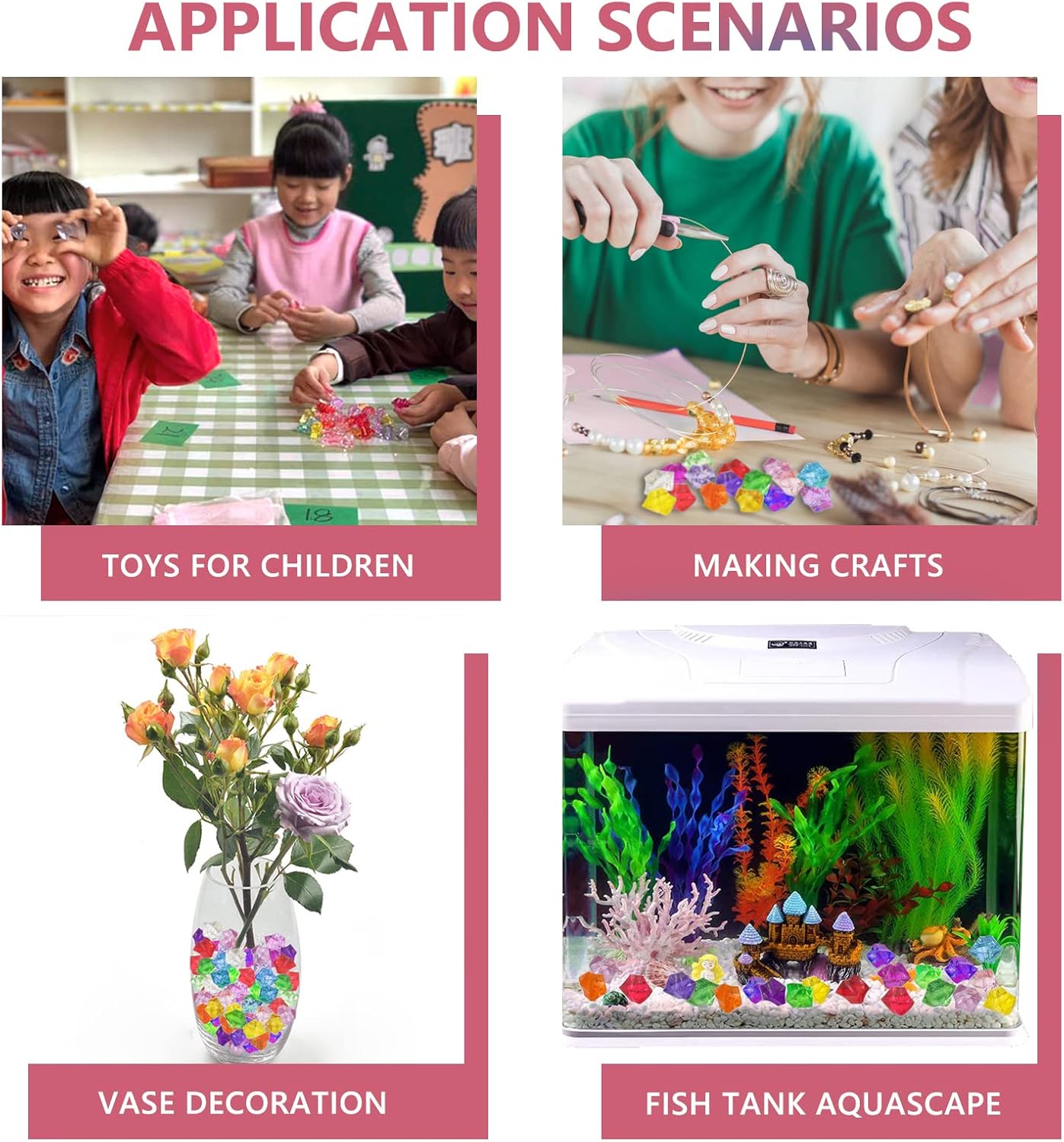 - Fine workmanship: Every piece of our Acrylic crystal gems are well polished and have no rough edges. These ice cubes are beautiful in shape and color. They are very bright under the light or sunshine, which can make your decoration distinctive and add brilliance to your life.