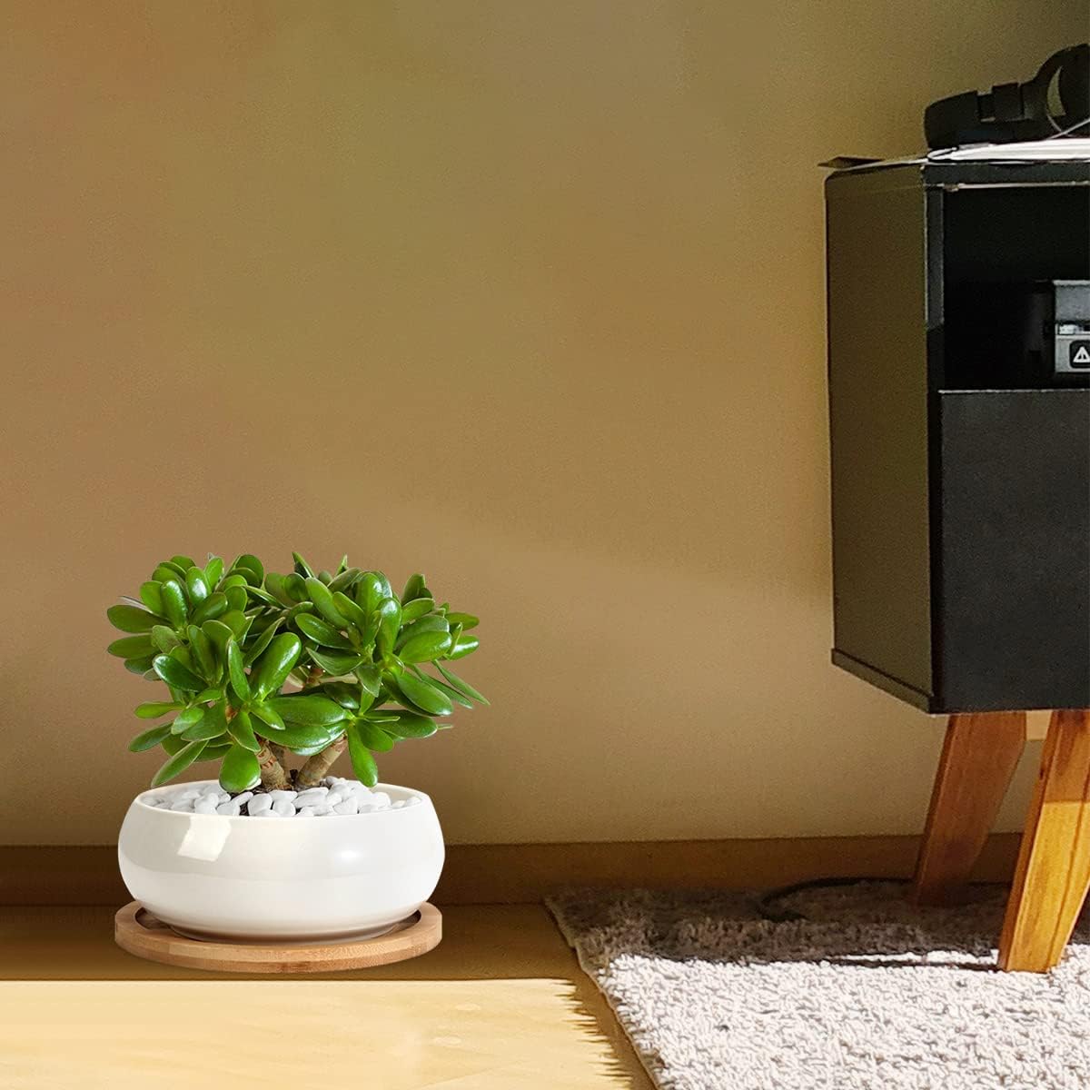 - Stylish & Functional Design: Crafted from high-quality white ceramic, these planters bring a sleek, modern touch to any décor. The bamboo trays add a natural, warm contrast while protecting your surfaces from water damage.