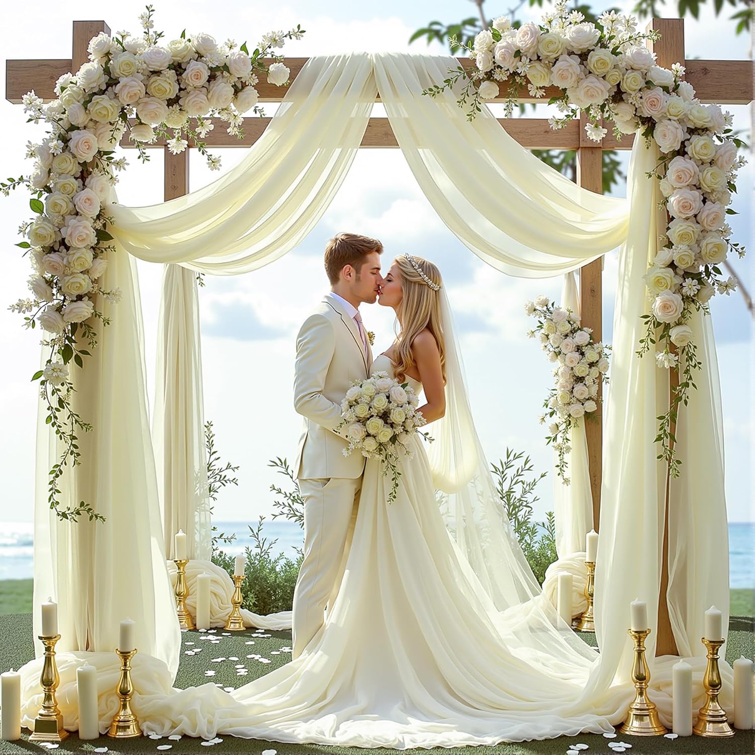 - What You Get: Including 1 panel ivory chiffon wedding arch drapes, each panel is 28" wide by 6 Yards (216 inches) long. Voile sheer chiffon draping fabric are good choice to decorate your wedding arch arbor.