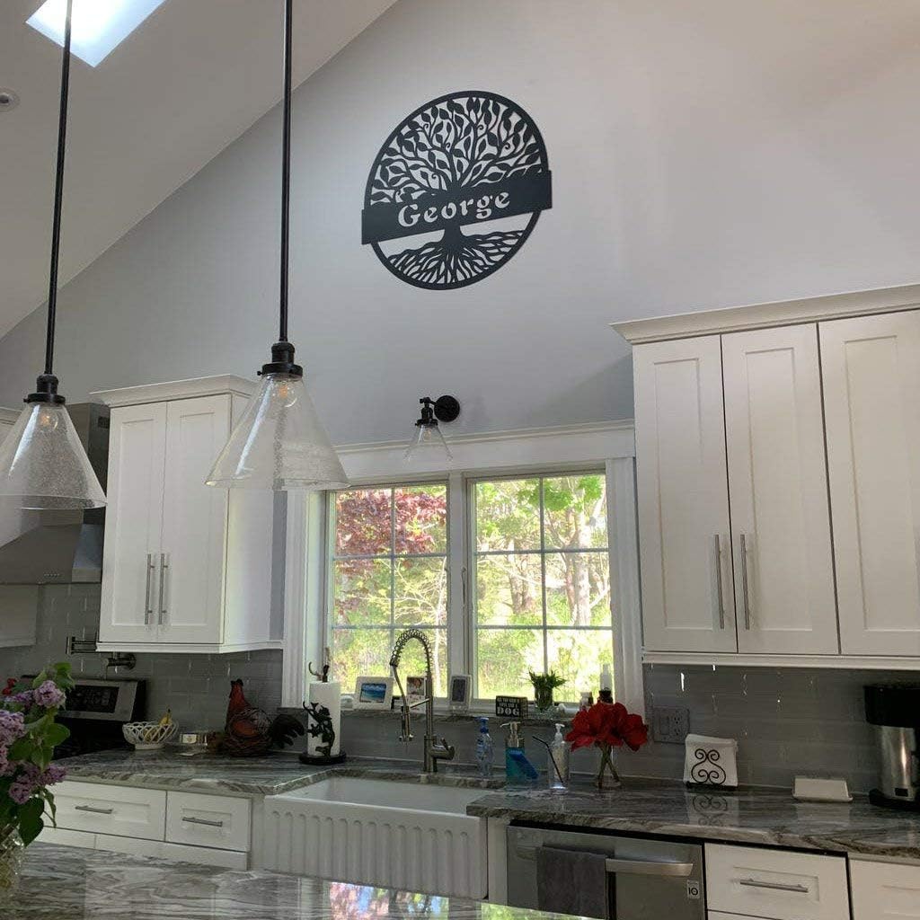 RealSteel Personalized Metal Wall Art - Custom Tree of Life Design with Family Name - Circular Metal Sign - Personalized Wedding, Anniversary, or Housewarming Gift - Black, 36"