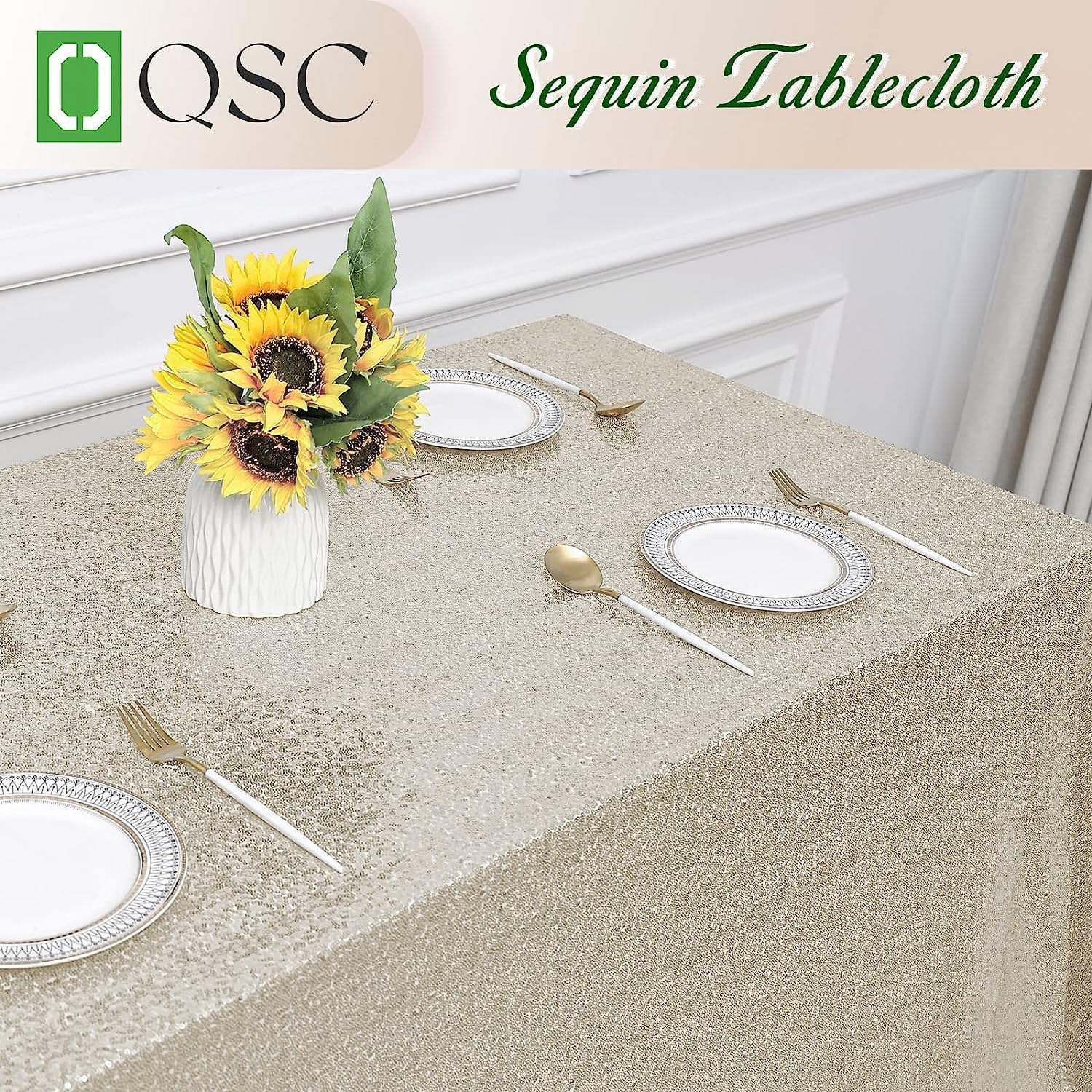 OQSQ Champagne Sequin Tablecloth 50x80 inch, Glitter Drape Table Cloth, Sparkle Sequence Table Overlays for Thanksgiving Day Wedding Birthday Party Baby Bridal Shower