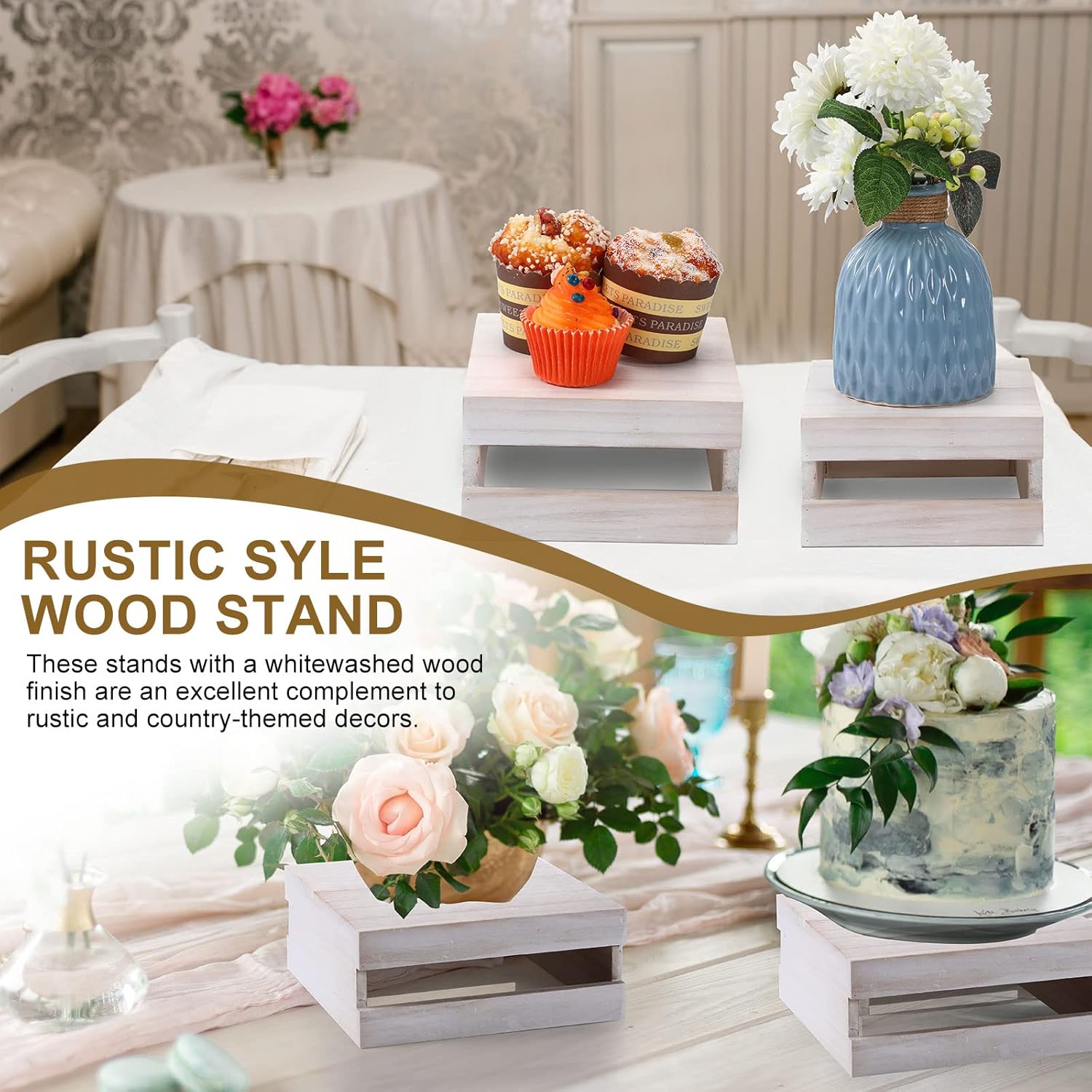 - Package Contains: you will receive 4 pieces of whitewashed wooden cake stands in different sizes; Each cake stand has a cutout stripe design on both sides; The sufficient quantity and different sizes of cupcake stands can meet your needs for your party cupcakes, desserts of various sizes