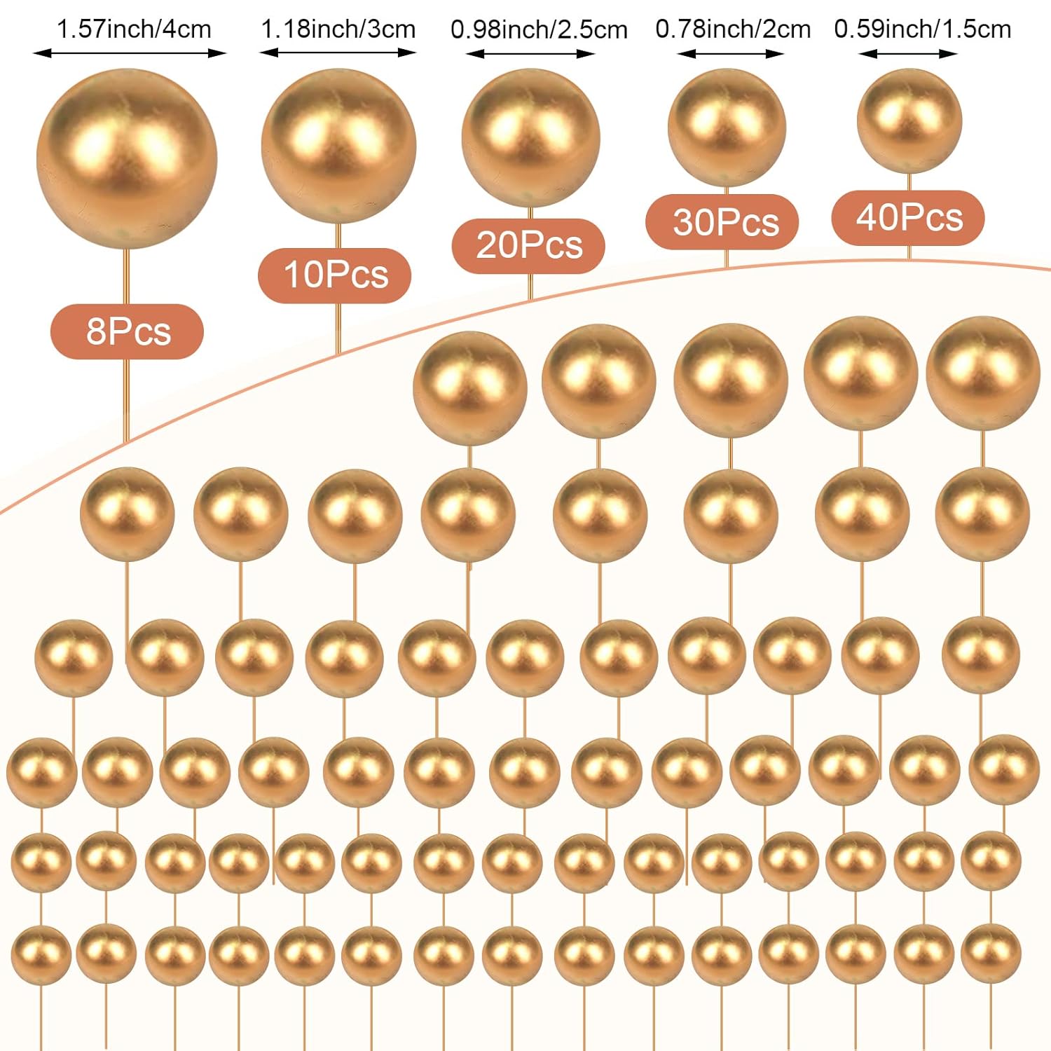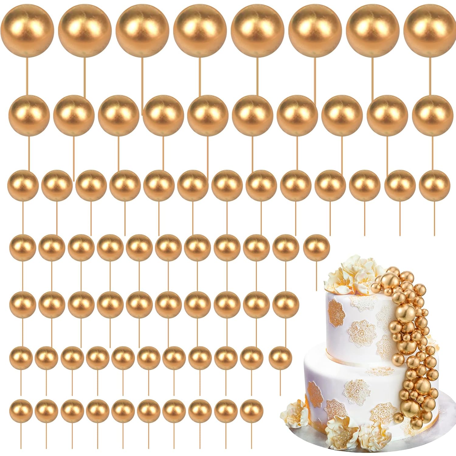 108 Pcs Balls Cake Topper DIY Cupcake Insert Foam Balloons for Cake Baking Wedding Anniversary Birthday Decoration(Gold,Multi Sizes)