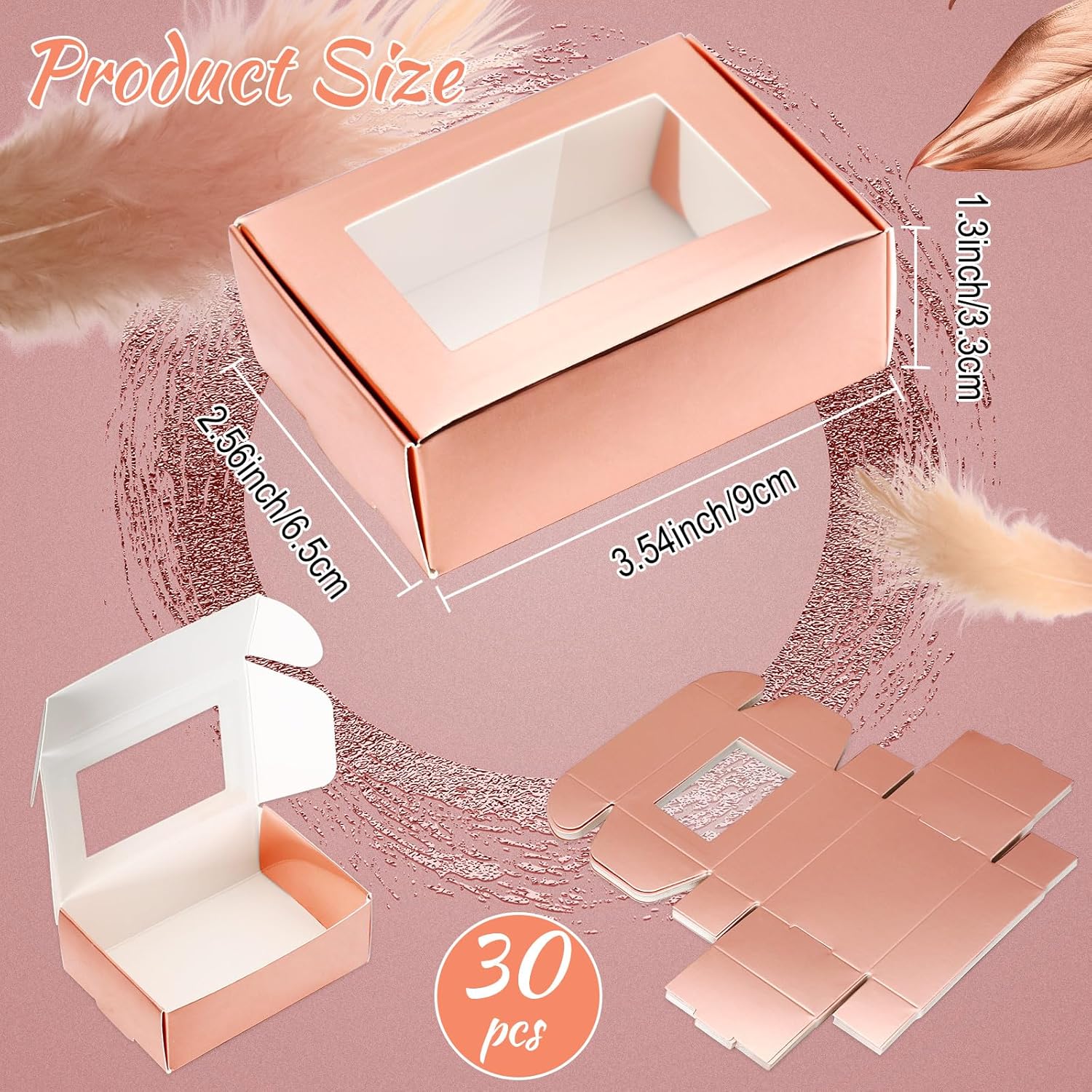 Zonon 30 Pcs Soap Boxes for Homemade Packaging, Mini Kraft Treat Boxes with Window for Bakery Candy Soap Making Gift Packaging(3.5 x 2.4 x 1.2 Inch,Rose Gold)