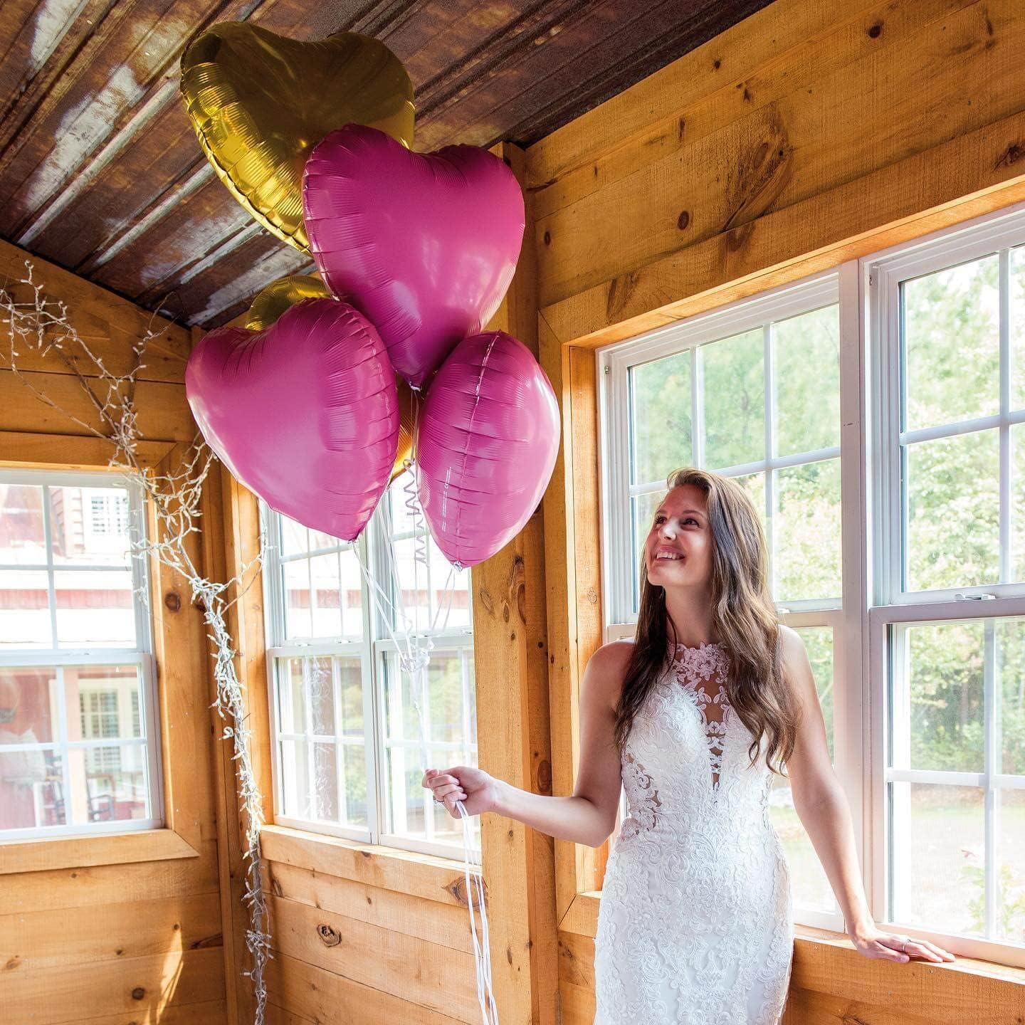 10Pcs Pink Foil Heart Shaped Balloons 18 Inch Bright Pink Heart Balloons For Baby Shower Wedding Valentine Decorations Love Balloons Party Decorations