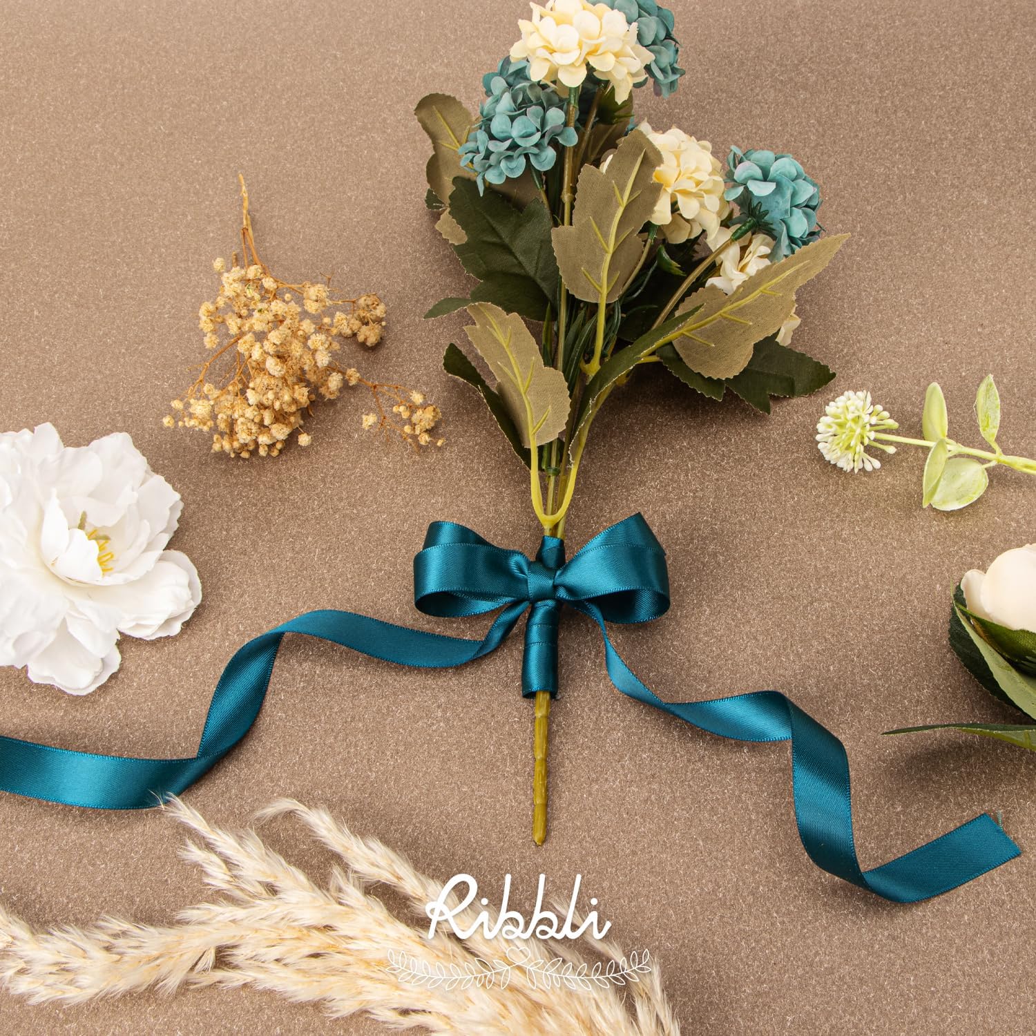 Ribbli Teal Satin Ribbon 5/8 inch x Continuous 25 Yards,Double Faced Satin Use for Craft, Gift Wrapping, Christmas Ornaments, Hair Bows, Bouquet Bows