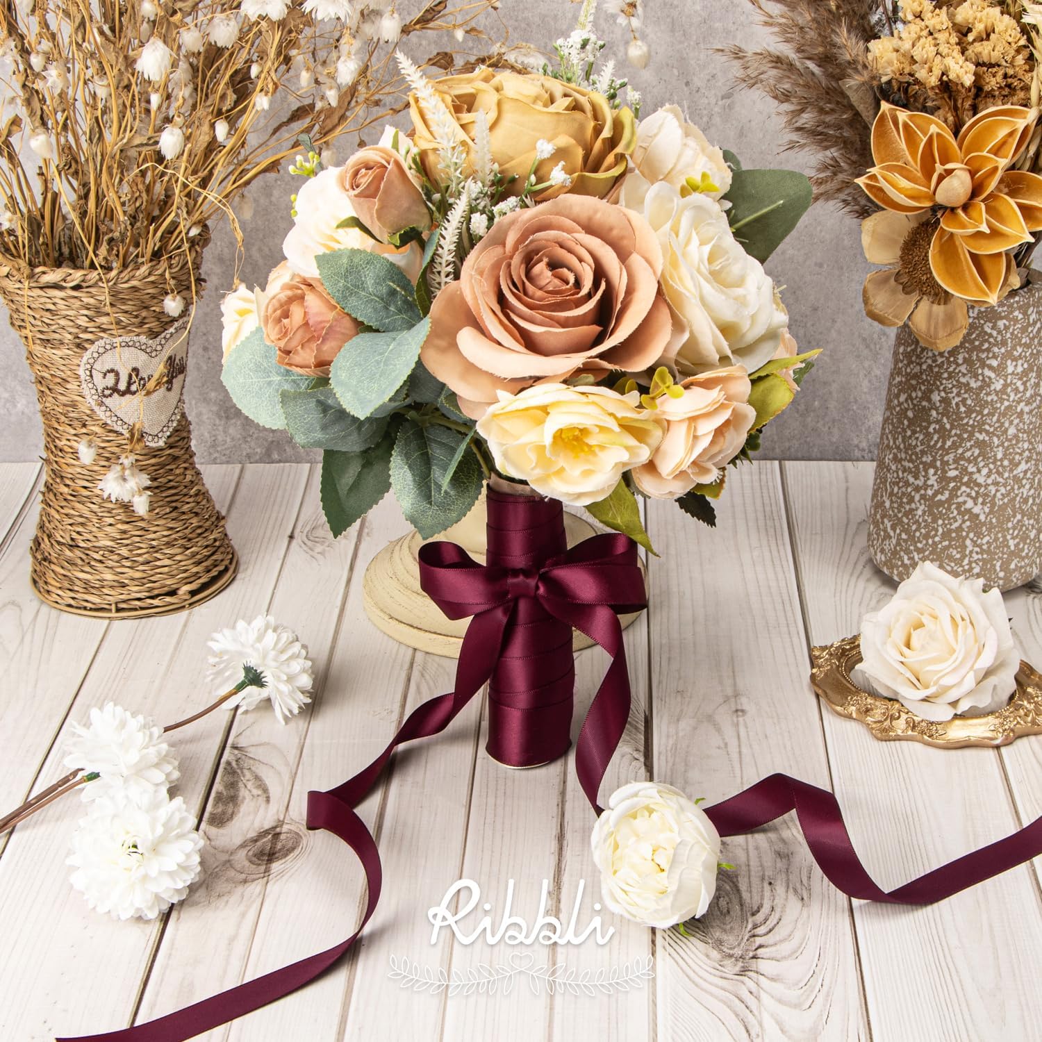 Ribbli Burgundy Satin Ribbon 5/8 inch x Continuous 25 Yards,Double Faced Satin Use for Craft, Gift Wrapping, Christmas Ornaments, Hair Bows, Bouquet Bows
