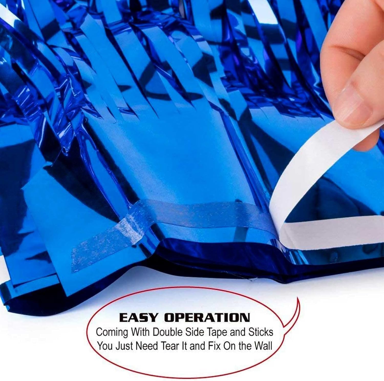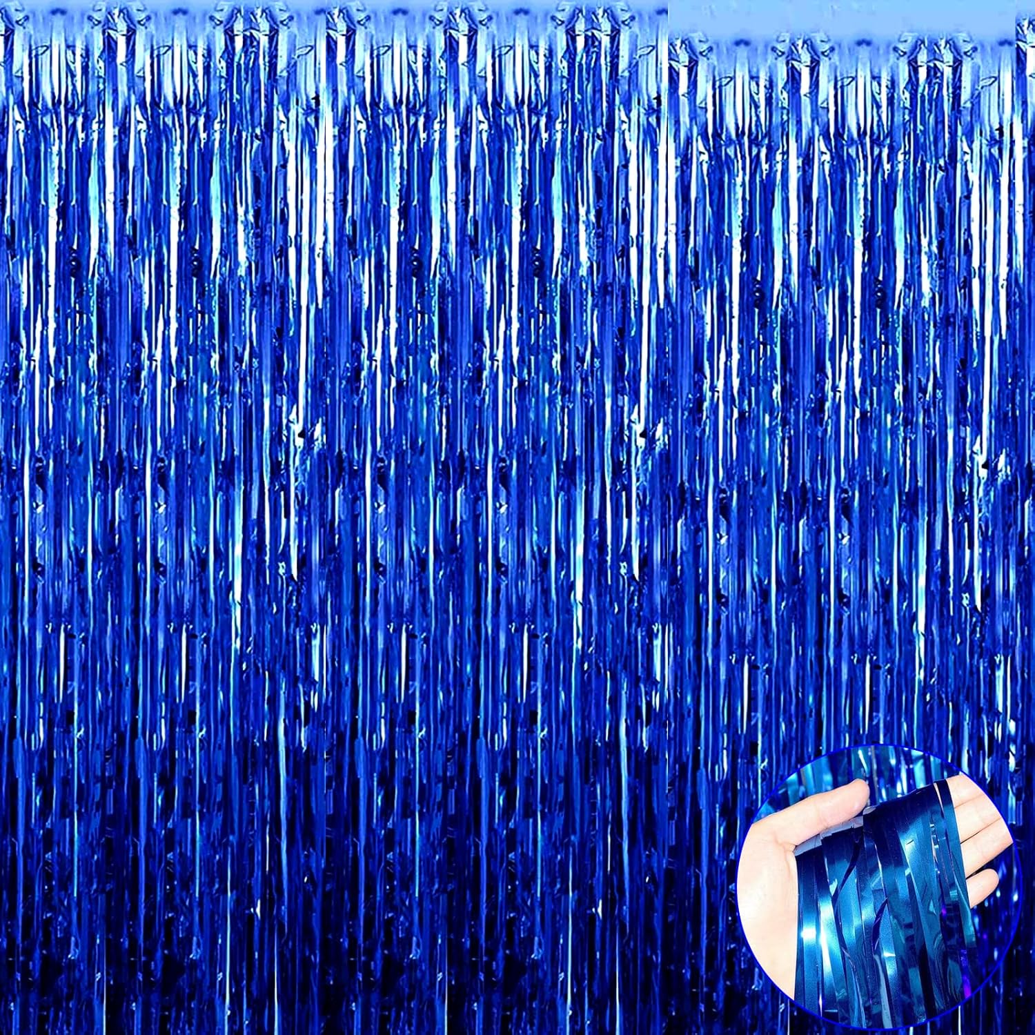 - The size of each metallic tinsel foil fringe curtain is 3.2 feet wide and 9.84 feet long, Package include 4 pack foil fringe curtains, suitable for hanging on a door or coverage a wall fully.