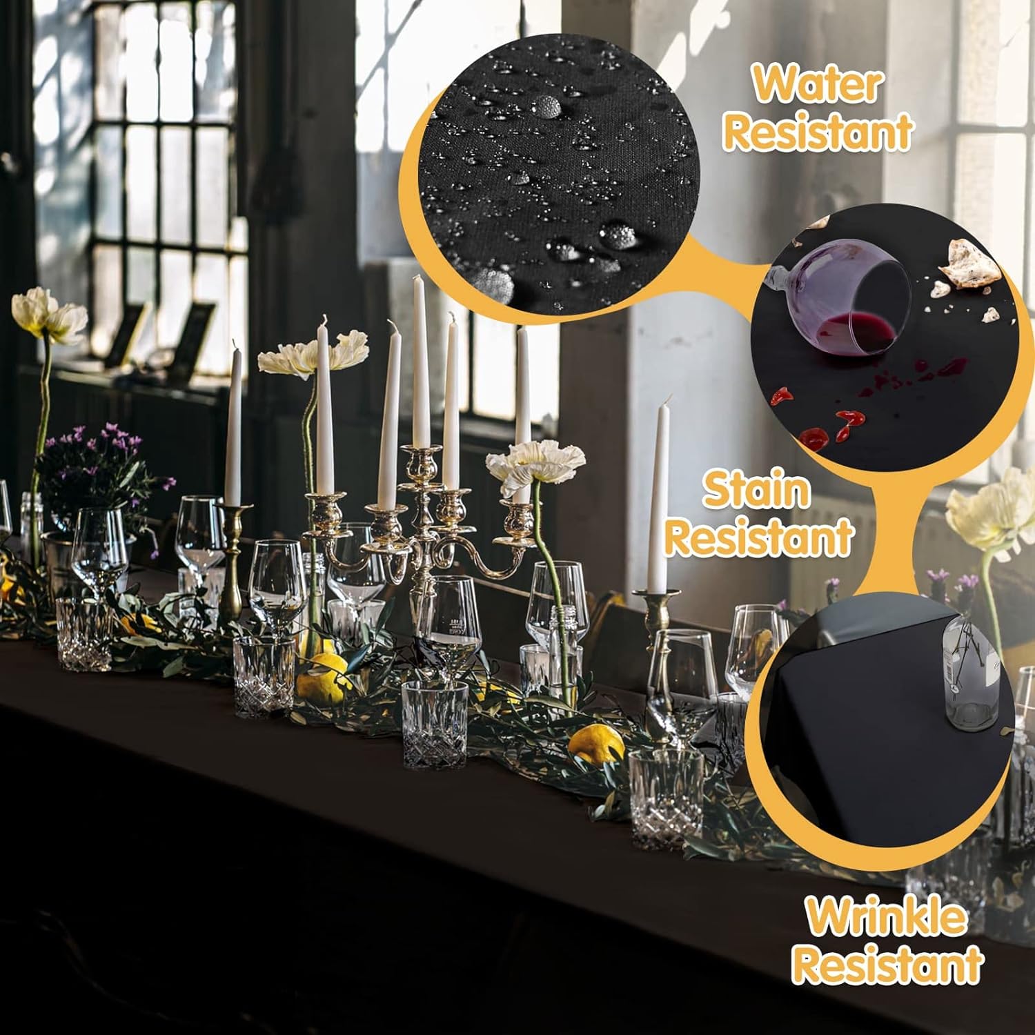 - Stain & Wrinkle Resistant: No worry about juice, red wine, sauce, gravy or other food being spilled on your table cloth, any spots come out easily