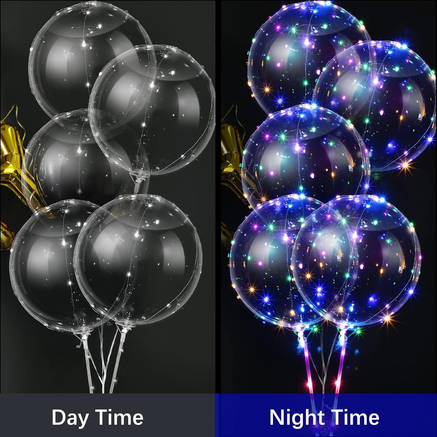 - Reliable and elastic: these bubble 20 inch (inflated size) led balloons are made of safe transparent TPU, which has high elasticity, not easy to tear and break, which will be pretty cool additions for the parties