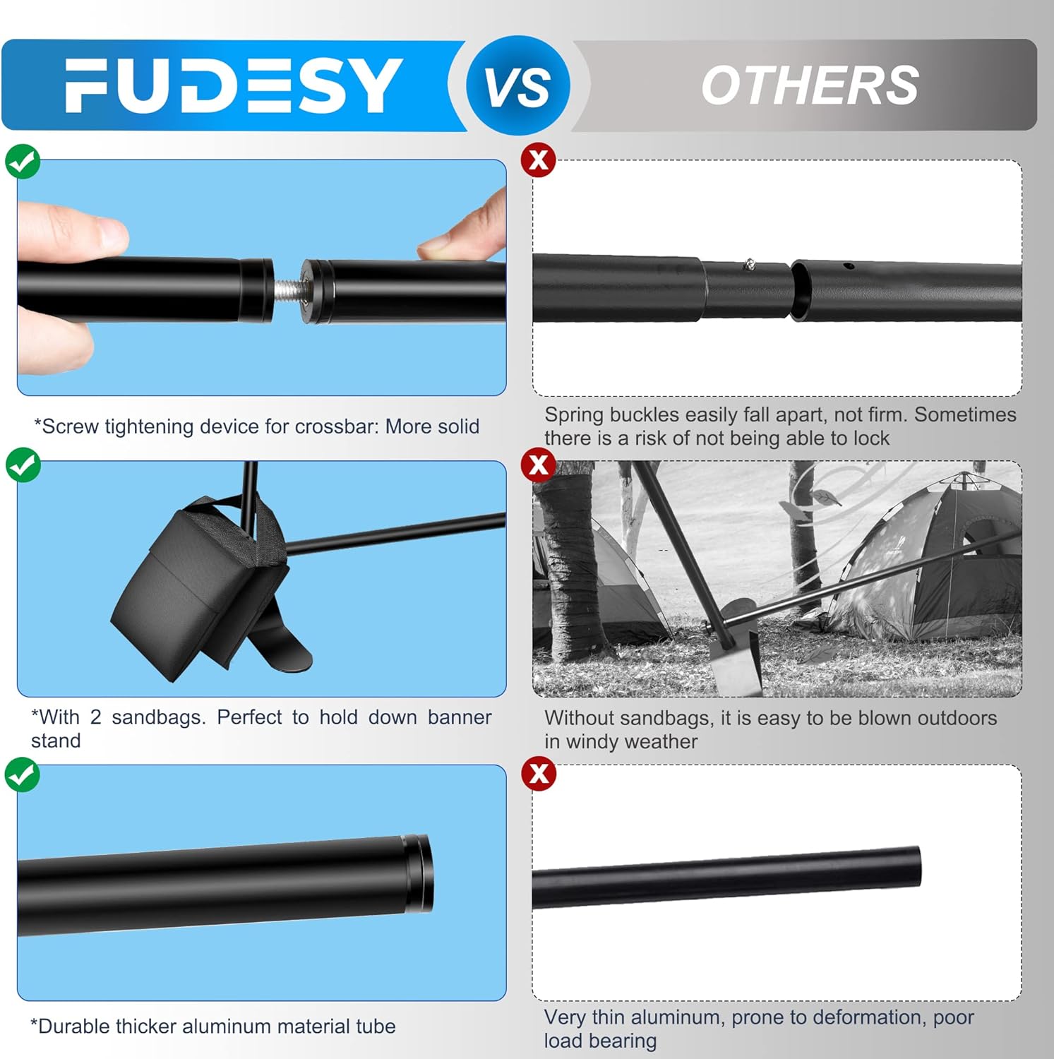 FUDESY Backdrop Banner Stand, 10x8ft Heavy Duty Display Frame, Adjustable Metal Telescopic Tube, Step and Repeat Background Stand Kit for Trade Show, Photography Photo Booth, Party, with Sandbags