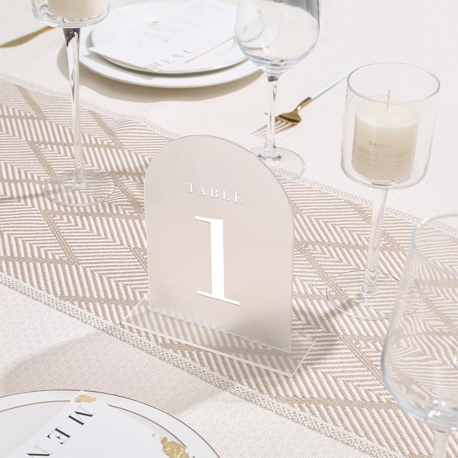 UNIQOOO Frosted Arch Wedding Table Numbers with Stands 1-20, 5x7" Acrylic Display Signs and Holders, Pack of 20, Perfect for Centerpiece, Reception, Decoration, Party, Anniversary, Event