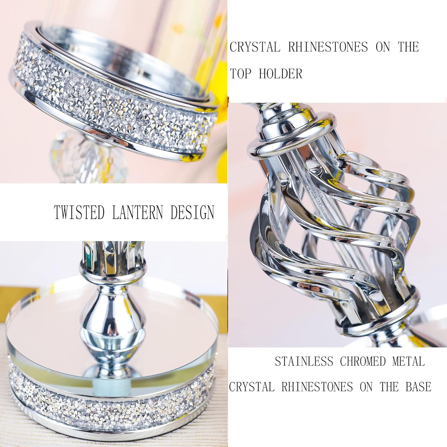 Hanjue Crystal Candle Holders for Pillar Candle, Metal Crystal Candle Holder for Home Decor, Centerpieces, Coffee Dining Table CH0509 (Silver (M))