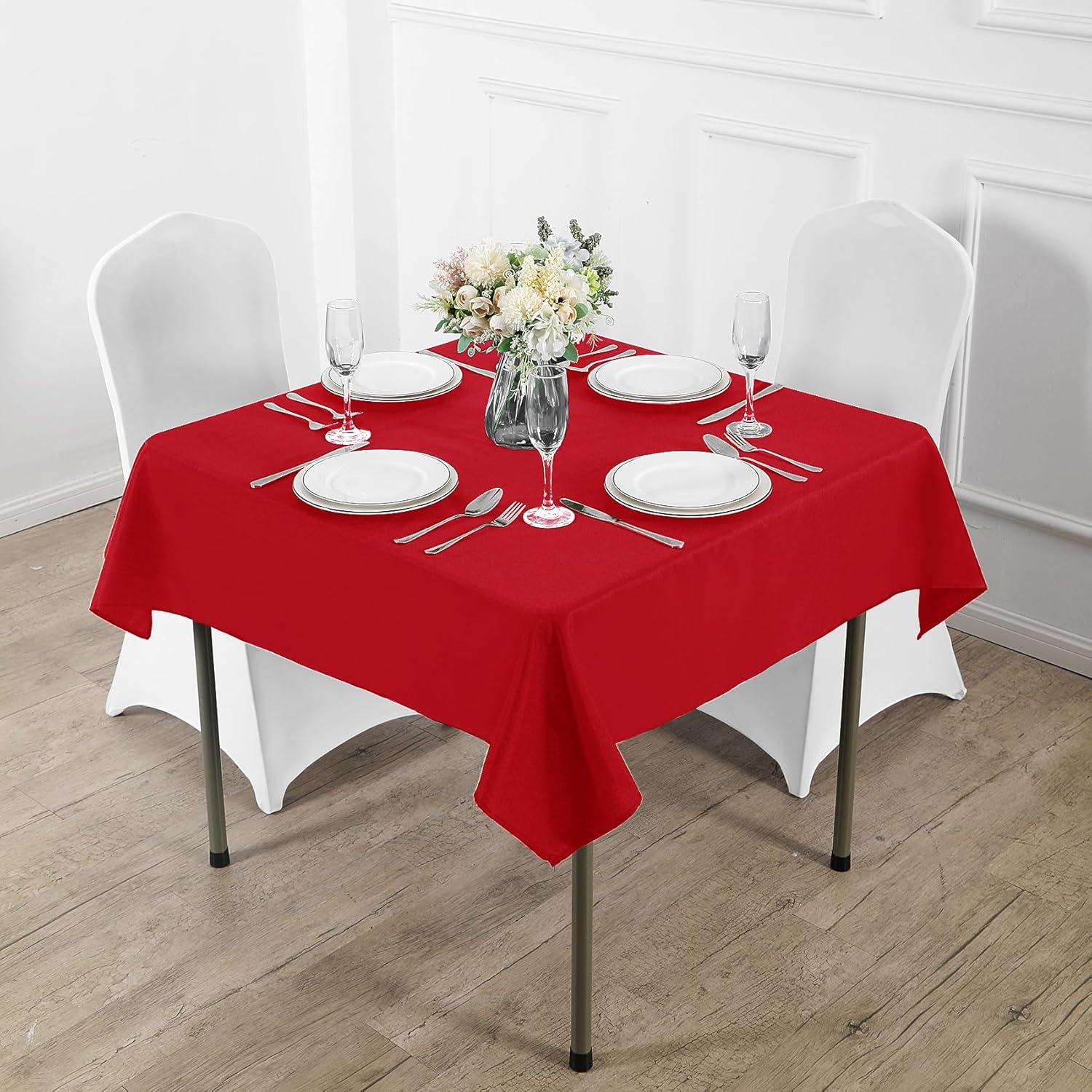 Fokitut 2 Pack Waterproof Square Tablecloth, 90x90 Inch, Stain Resistant and Wrinkle Polyester Table Cloth, Fabric Table Cover for Kitchen Dining, Wedding, Party, Holiday Dinner-Red