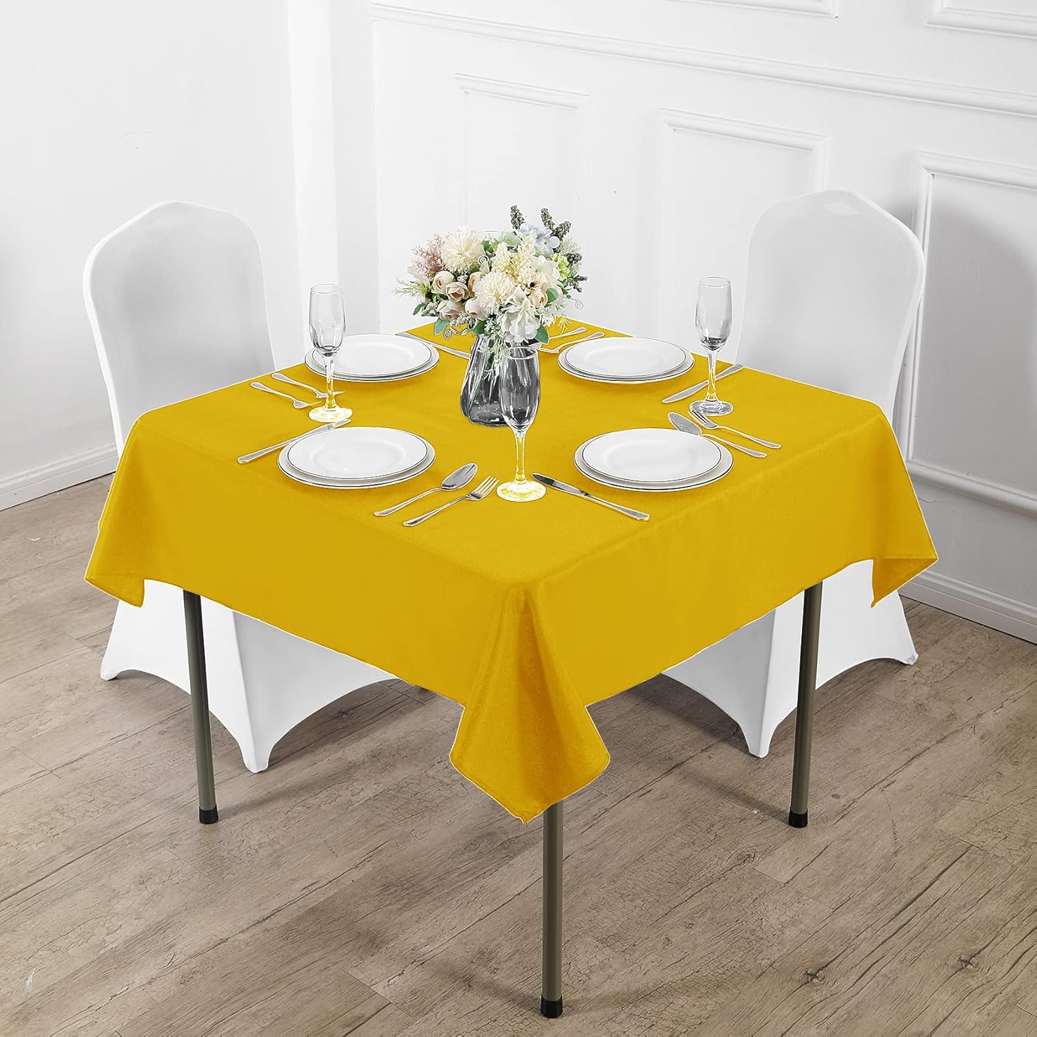 Fokitut 2 Pack Waterproof Square Tablecloth, 90x90 Inch, Stain Resistant and Wrinkle Polyester Table Cloth, Fabric Table Cover for Kitchen Dining, Wedding, Party, Holiday Dinner-Yellow