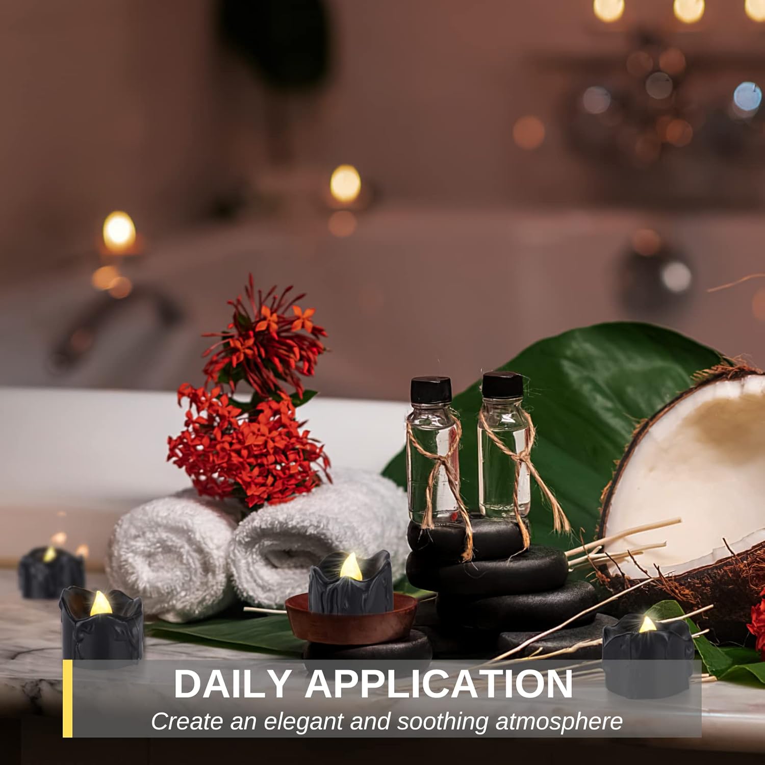 Homemory 24-Pack Halloween Black Dripping Flameless Tea Lights, Battery Operated Flickering LED Candles, Safe for Pumpkins, Party & Holiday Decor, 1.58" D x 1.2" H, Warm White Glow