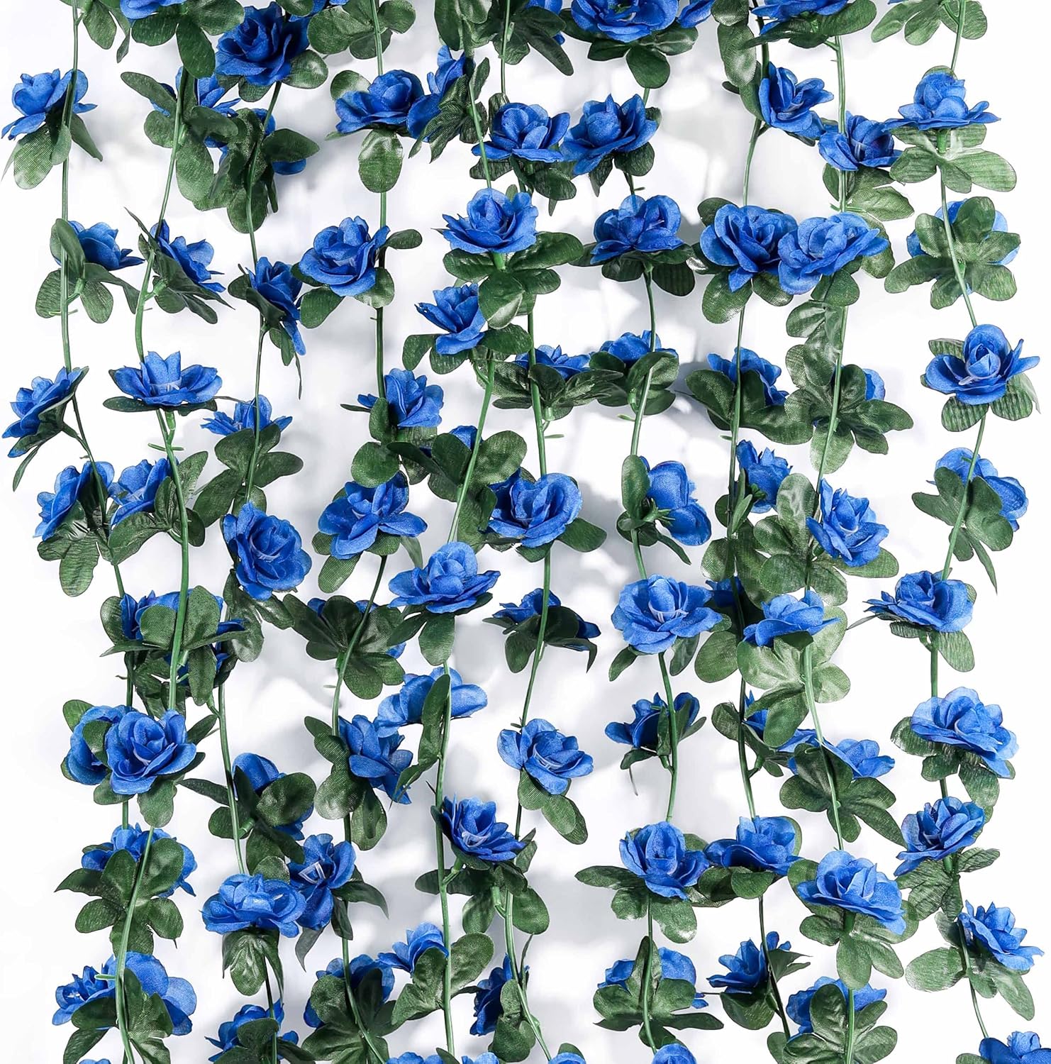 - Size: With total length 41FT, each floral rose garland 8.2 FT Long, flowers 1.6 inches in diameter, each blue flower vine holds about 45 leaves, 45 flowers