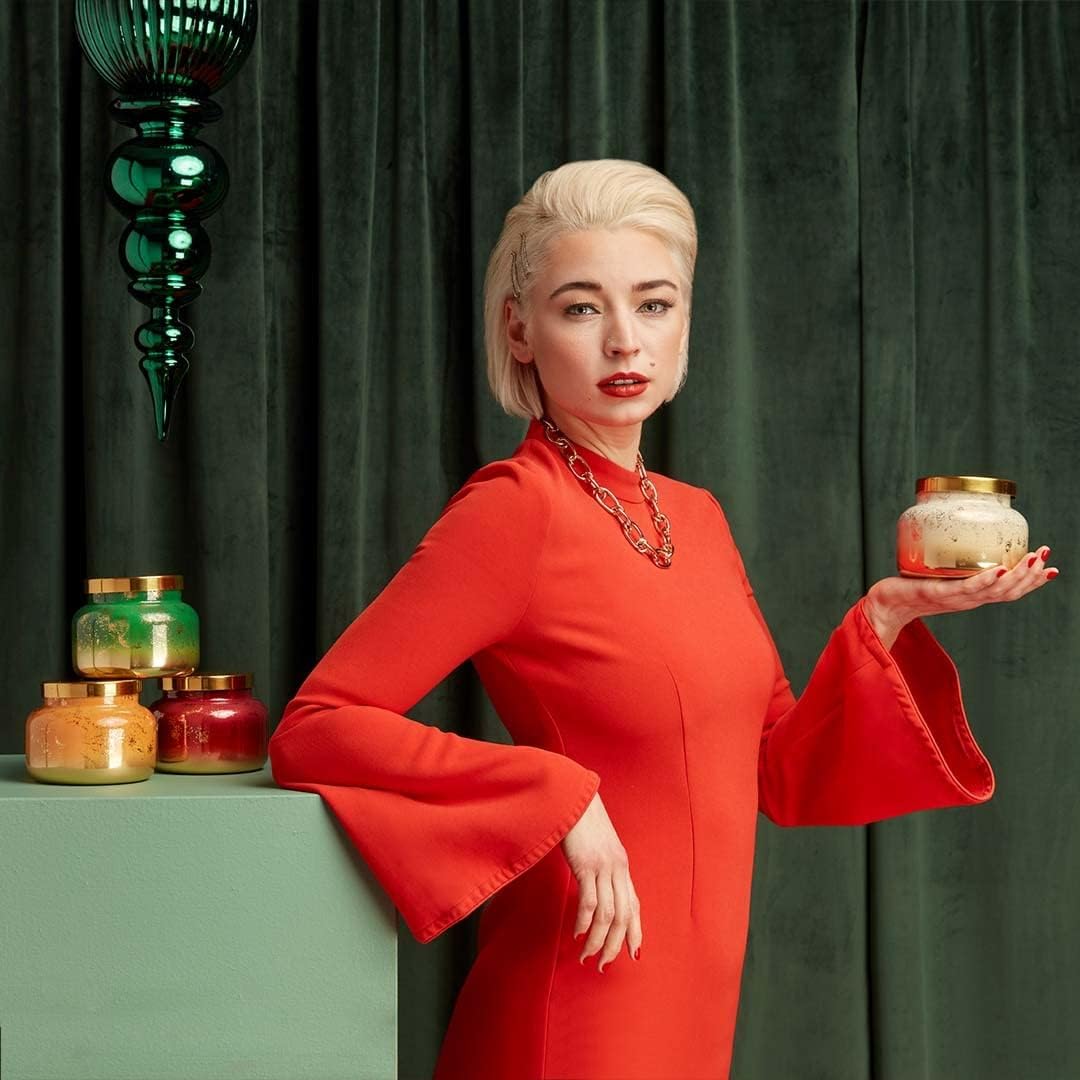 - Glimmer Jar Candles: These scented candles feature the iconic Signature Shape with an elevated ombre design with metallic foil accents & a gold electroplated interior. Featuring four colors and fragrances these holiday candles will add rich, romantic tones to any space!
