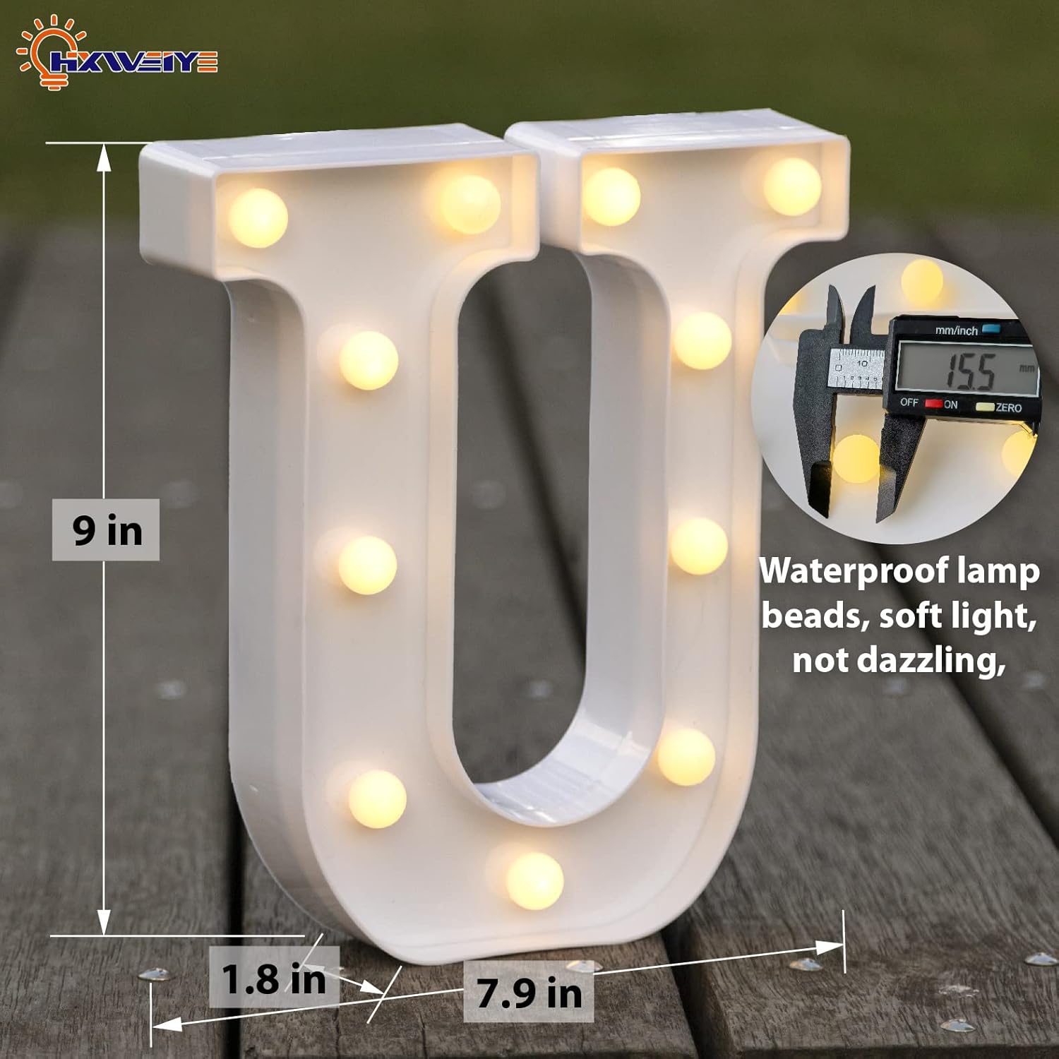 HXWEIYE LED Marquee Letters Lights Sign-U, Led Letters Lights 26 Alphabet, Light Up Number 0-9 Letters Sign for Party Home Birthday Anniversary Battery Powered Lighted Letters(Warm White)