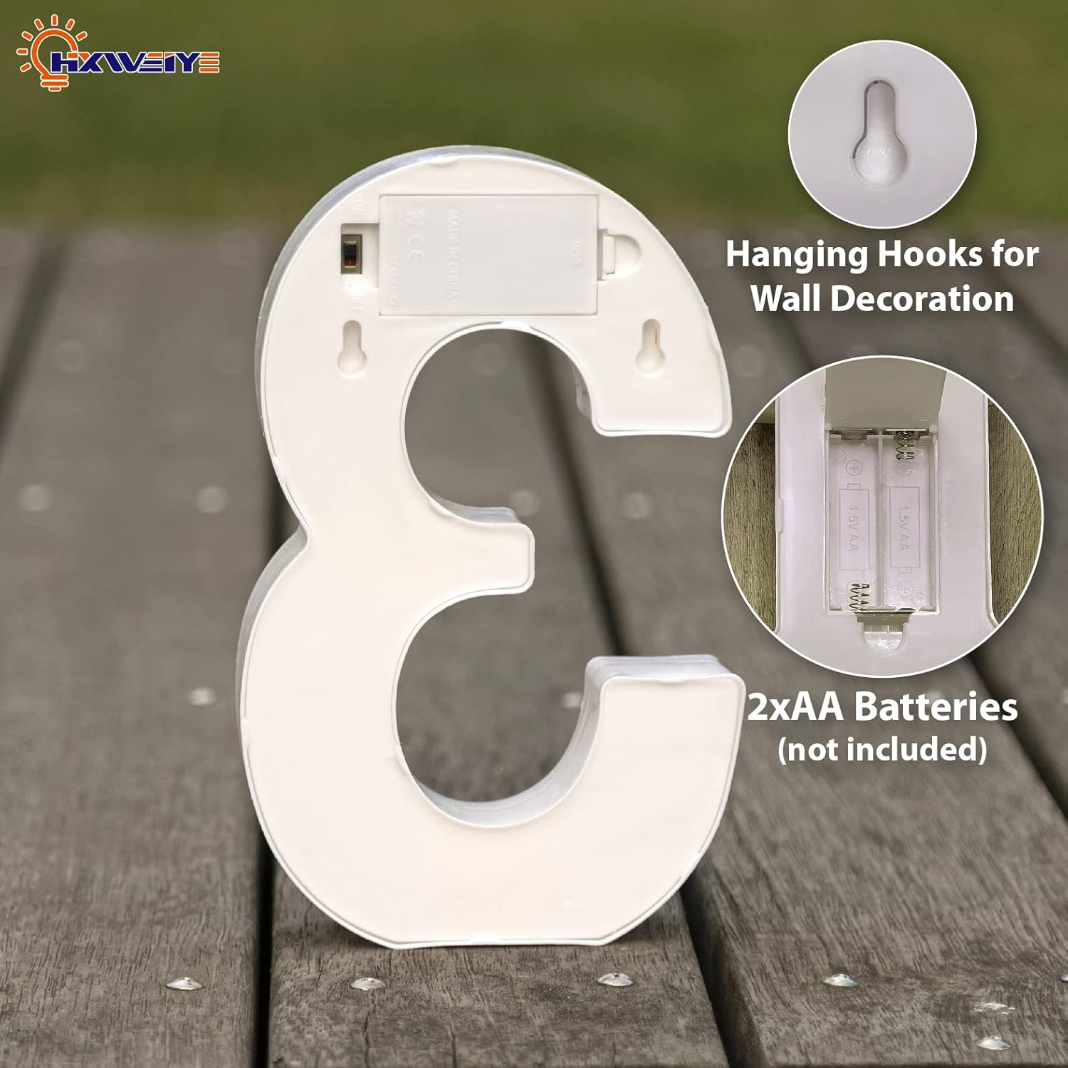 HXWEIYE Light Up Numbers-3, LED Marquee Number Lights Sign 26 Alphabet and 10 Number for Party Bar Birthday, Light Up Letters Battery Powered Warm White Christmas Decoration Numbers Lights