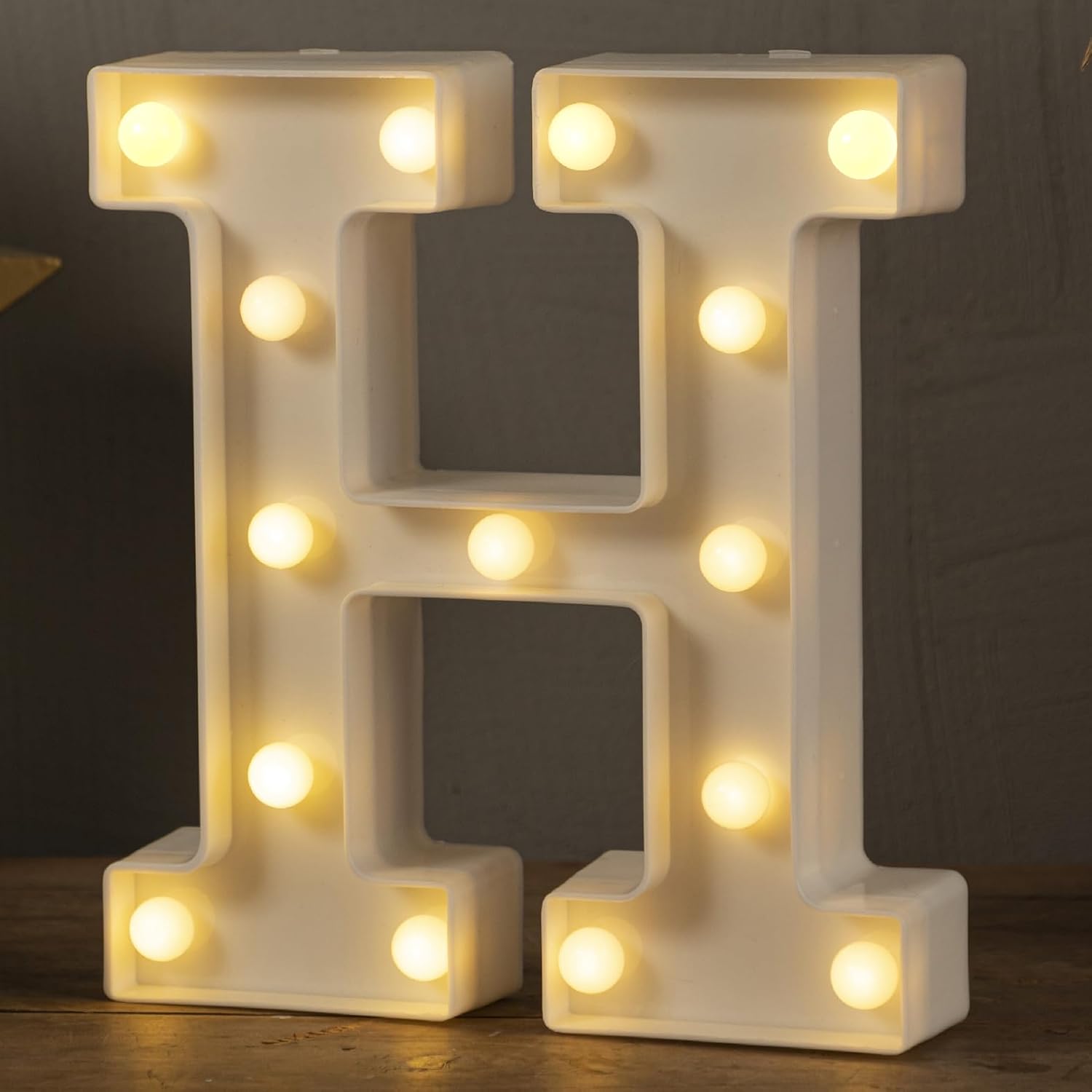 HXWEIYE Light Up Letters H, 8.57 Inch LED Marquee Letter Lights Sign 26 Alphabet and 10 Number Big Lights Letter for Party Birthday Bar Battery Powered Christmas Decor (9 * 8.3 * 1.8IN)-Warm White