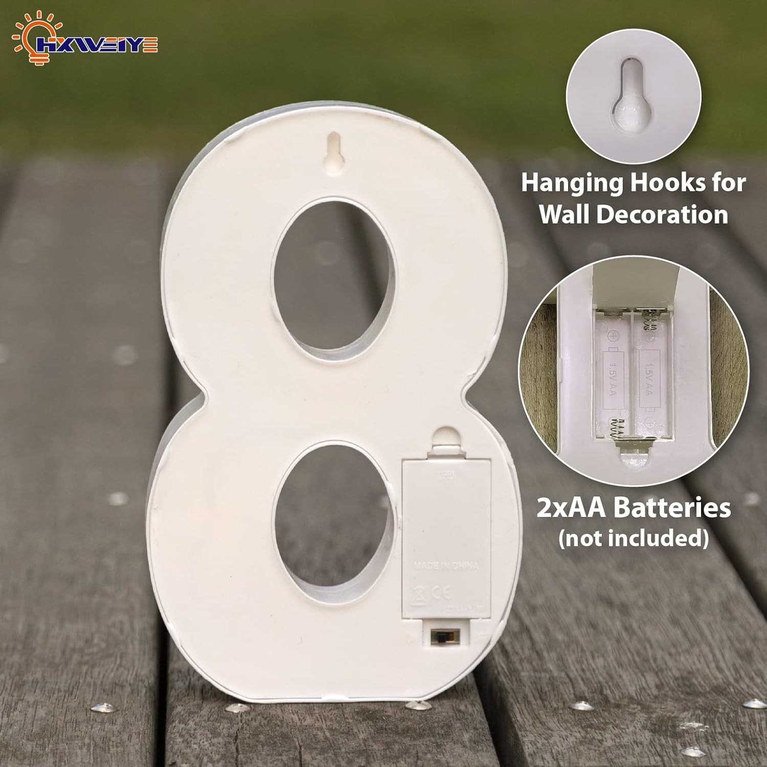 HXWEIYE Light Up Numbers-8, LED Marquee Number Lights Sign 26 Alphabet and 10 Number Big Lights Led Letters for Party Birthday Bar Battery Powered Christmas Decor Letter Lights (Warm White)