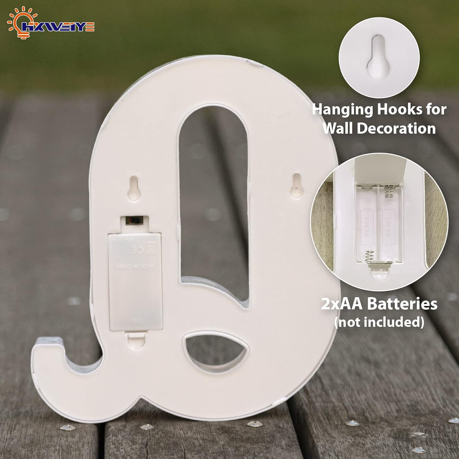 - ăBattery Operatedă: The marquee light up letters powered by 2AA batteries( Not included), no more mess wires. It is very safe to use, and it will not get overheated even for long-term use and no sharp parts, also safe for kids to use. The batteries need to be replaced when the lights get dim.