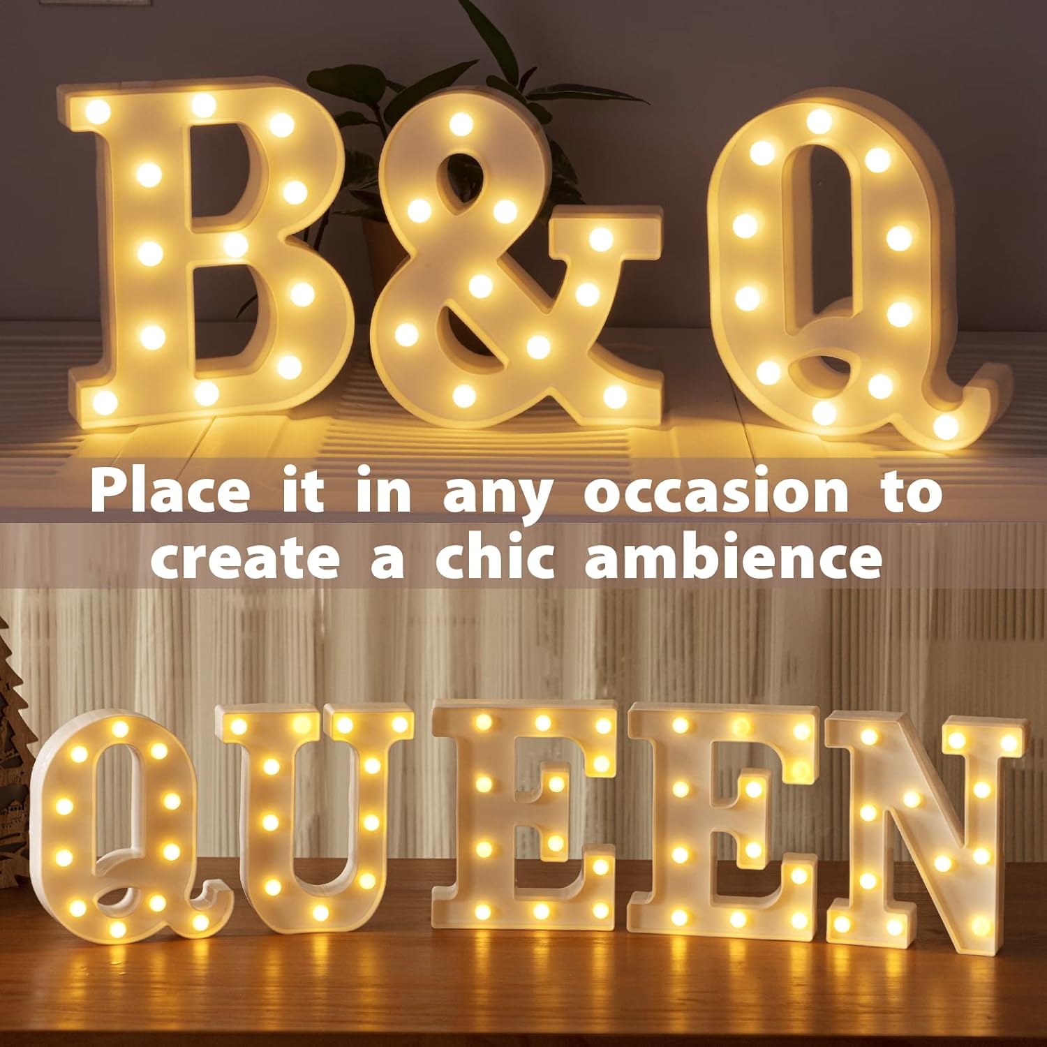- ăLight Up Lettersă: Made of high quality plastic+ LED, durable but light weight and Reusable. Each emits gorgeous warm white light, very cute and stylish. This marquee lights has a perfect size so they are portable, perfect for indoor outdoor birthday party, anniversary and other unforgettable moment.