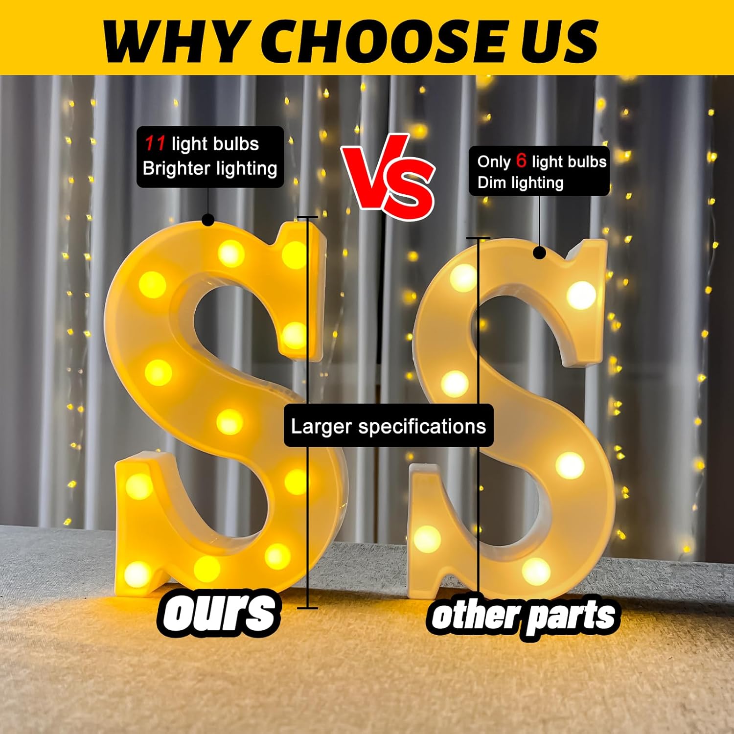 - 【Widely Used】: These led letters can light up your favorite words in various festival occasions, themed parties event, Christmas and interior and exterior decoration. Surprise your friend or loved one with their initial or name in lights up sign! An ideal gift for Christmas, Birthdays, Baby Showers, teens, Weddings, Party, Anniversaries, bars, cafes, pets and every important day decoration.