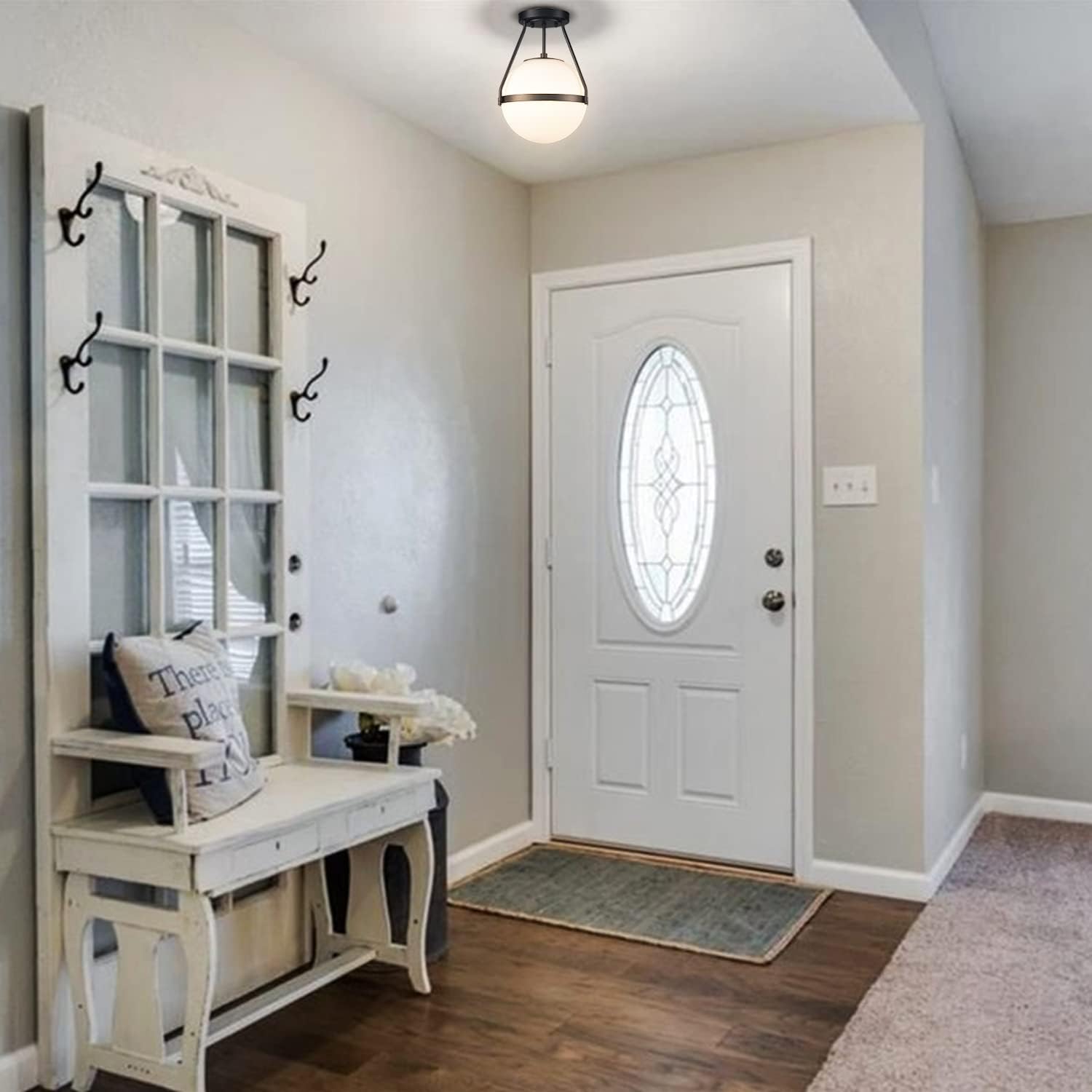 - Classic & Modern:The ceiling light fixture features a high-quality white opal globe glass shade in black finish,which creates a modern but simple look .