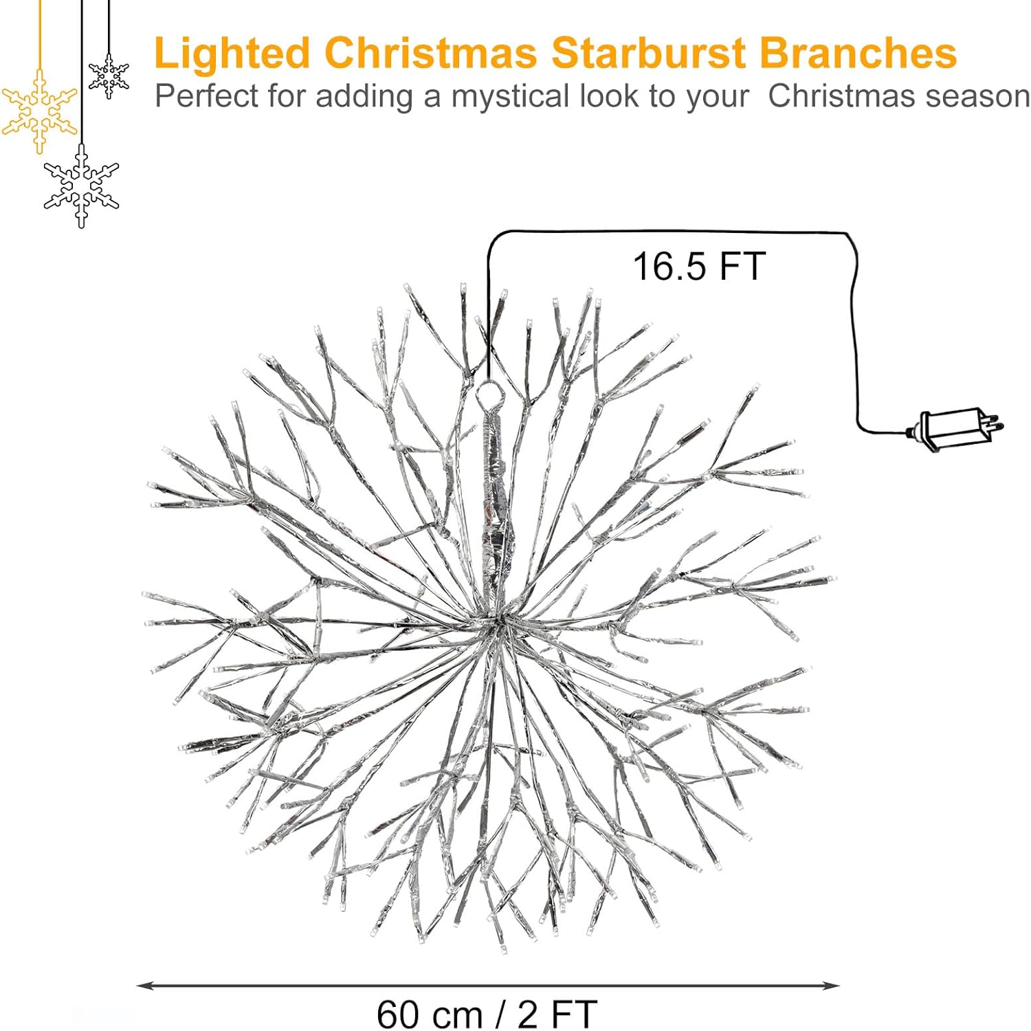 Christmas led Sparkle Ball Hanging Outdoor décorations -Haning Twig Ball,Snowflake Ornament Lights Indoor Outdoor Festive Holiday Décor 24Inch (Cool White)