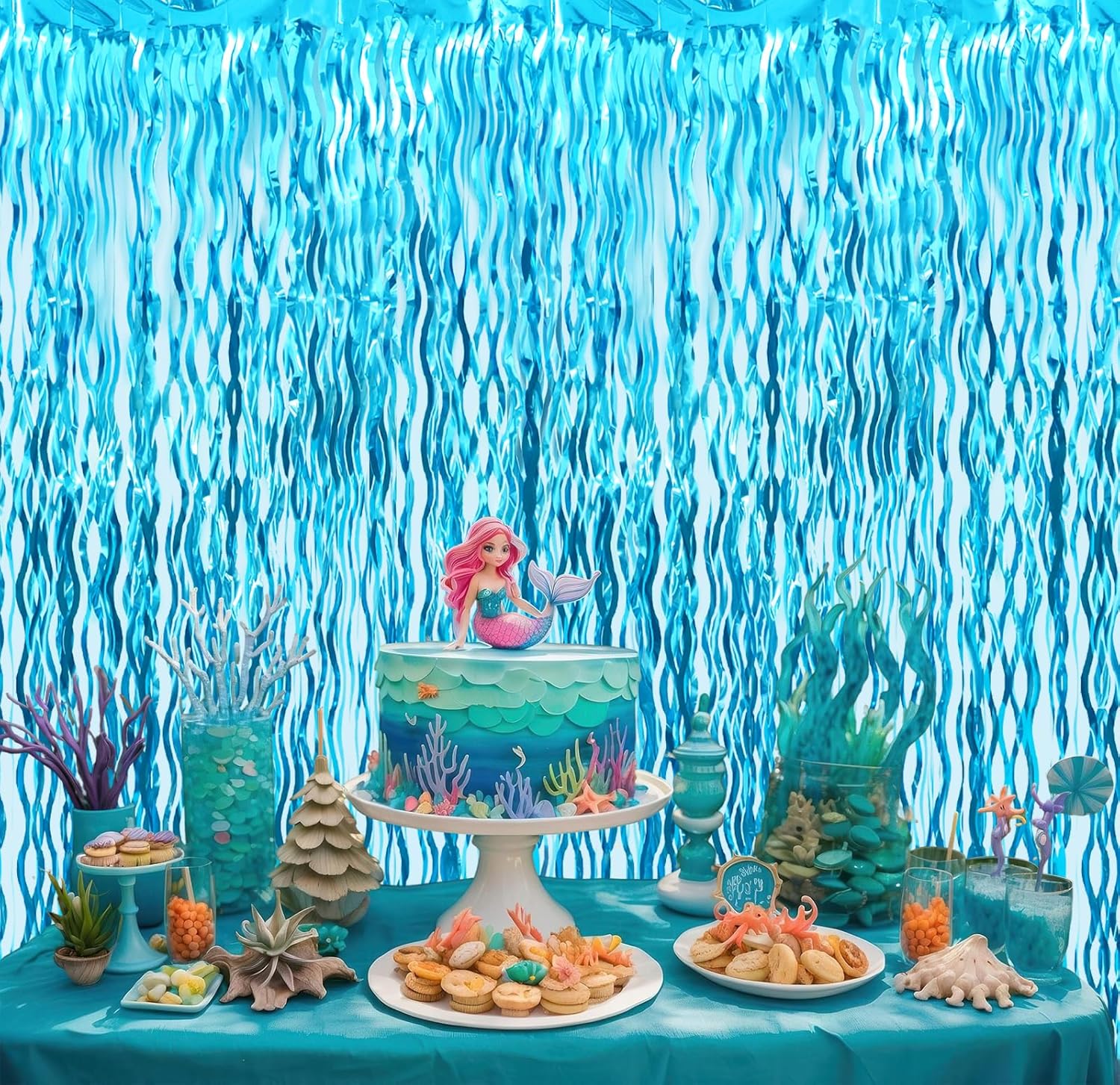 - Package Includes:4 pack wavy light blue foil fringe curtain,3.2 ft x 6.5 ft each,suitable for hanging on a door or coverage a wall fully