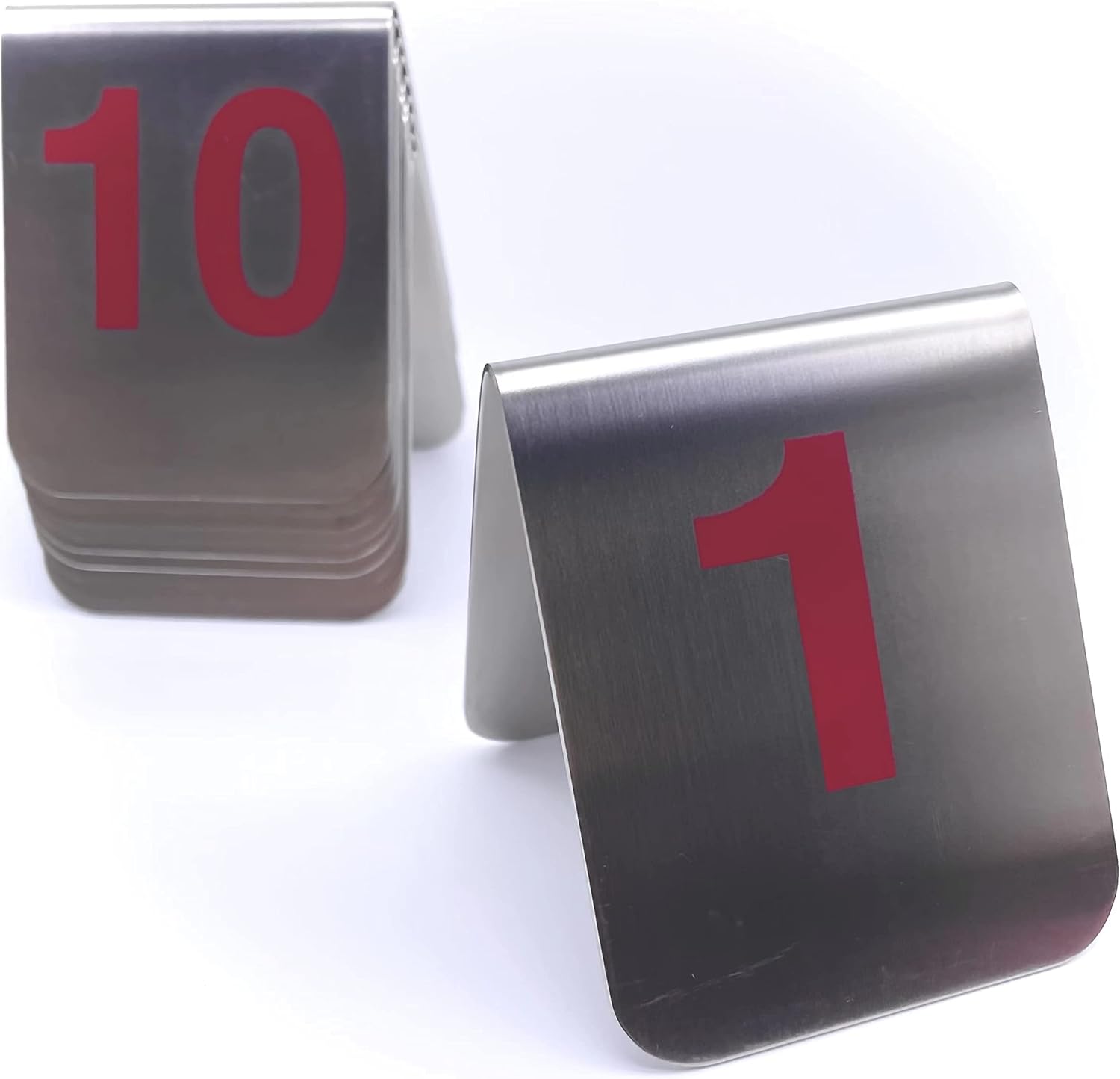 - The tent-style design makes the place cards more stable, easy storage.The double-sided numbers are easy to find, and the stainless steel material is hard to damage,never rust.Maintenance is simple, wash with water or wipe with cloth.