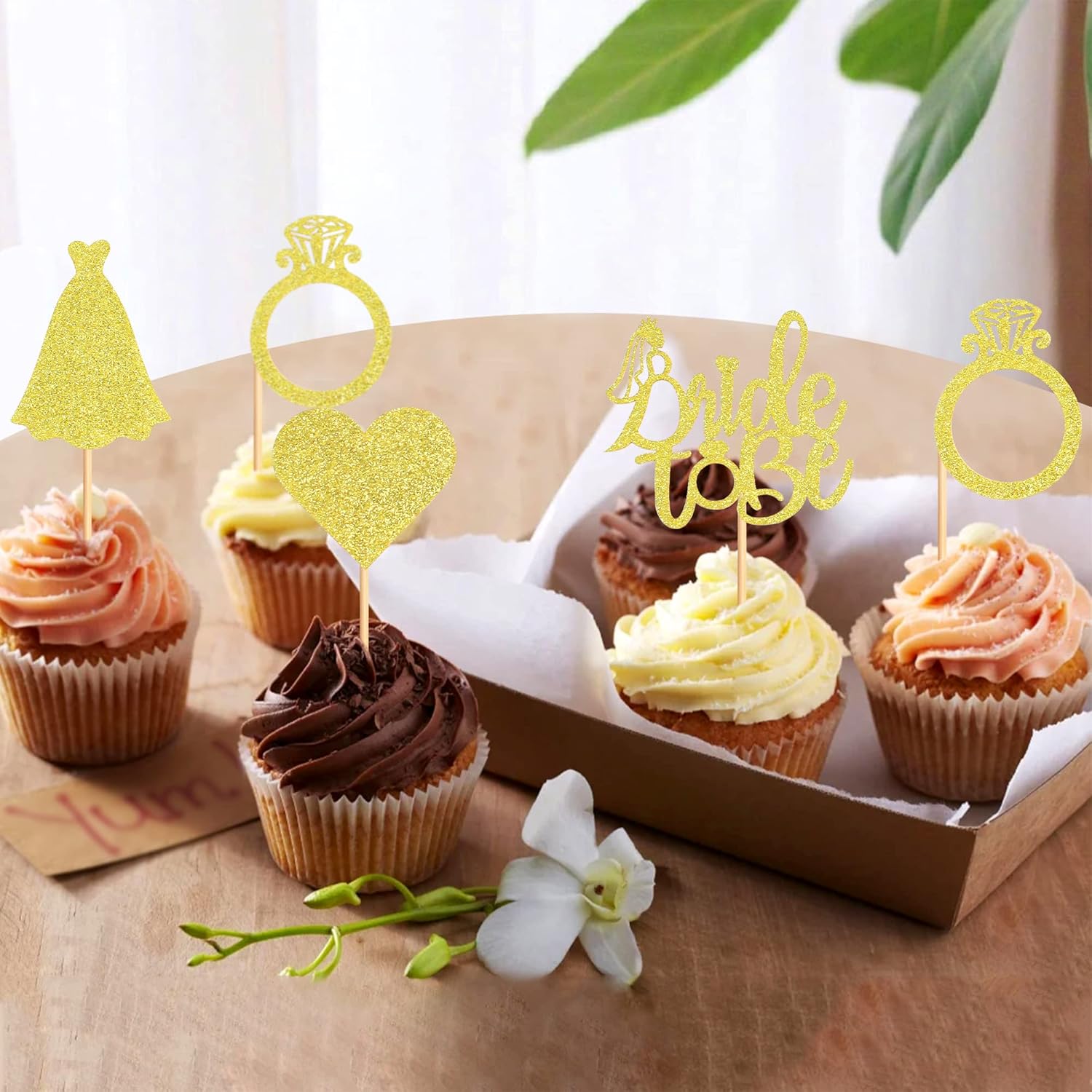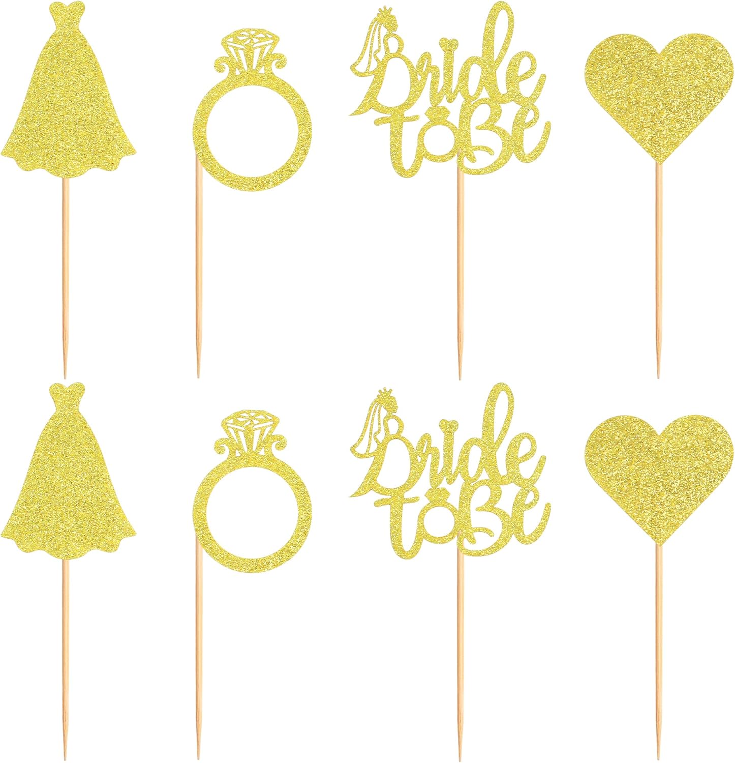 - 🎀PACKAGE INCLUDED: 24pcs gold glitter bride to be cupcake toppers, 4 styles, 6pcs of each style.