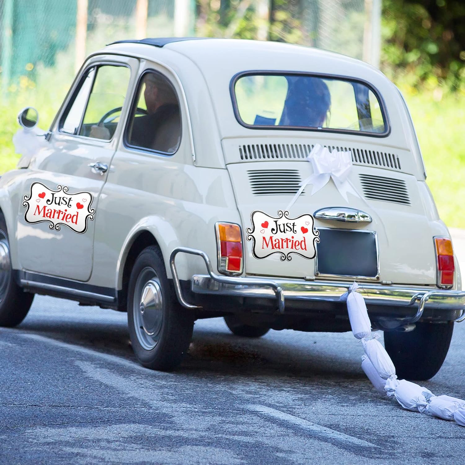 - What you will get: the package contains 2 pieces of just married car magnets with the size of approx.13.97 x 8.85 inches, the proper size fits most styles of cars as well as locations on the body, which is eye-catching and you can see the ornate car magnets even from a distance