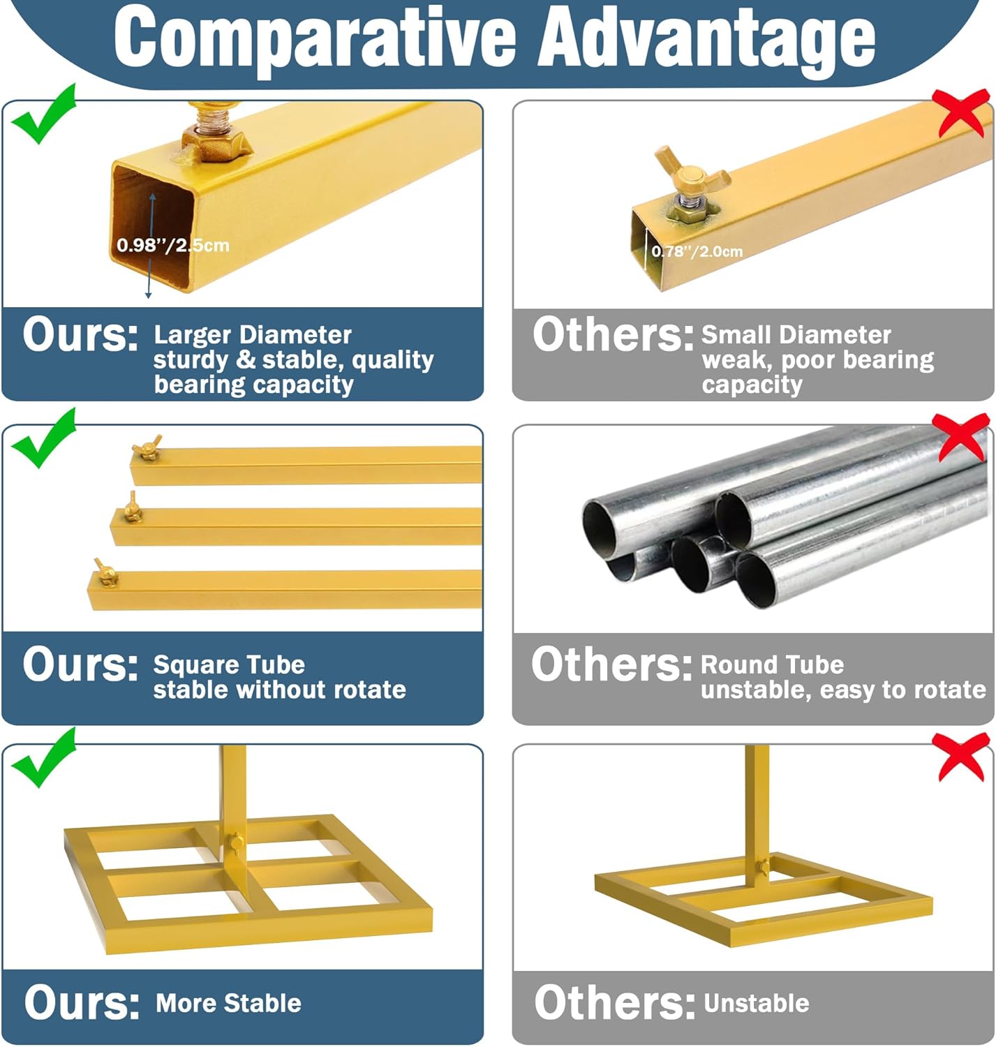 - 【Package Includes】Sqaure heavy duty backdrop stand contains L-shaped tube, L-shaped tube with a screw, Short straight tube and 2pcs Rectangular base (Flowers/Drape not included).