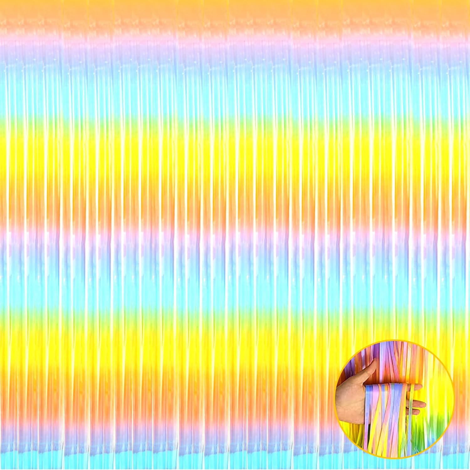 4 Pack Rainbow Foil Fringe Curtain Backdrop, 3.3Ft x 9.8Ft Colorful Metallic Tinsel Streamers Curtains, Wedding, Thanksgiving, Birthday, Christmas, Halloween Party Decoration