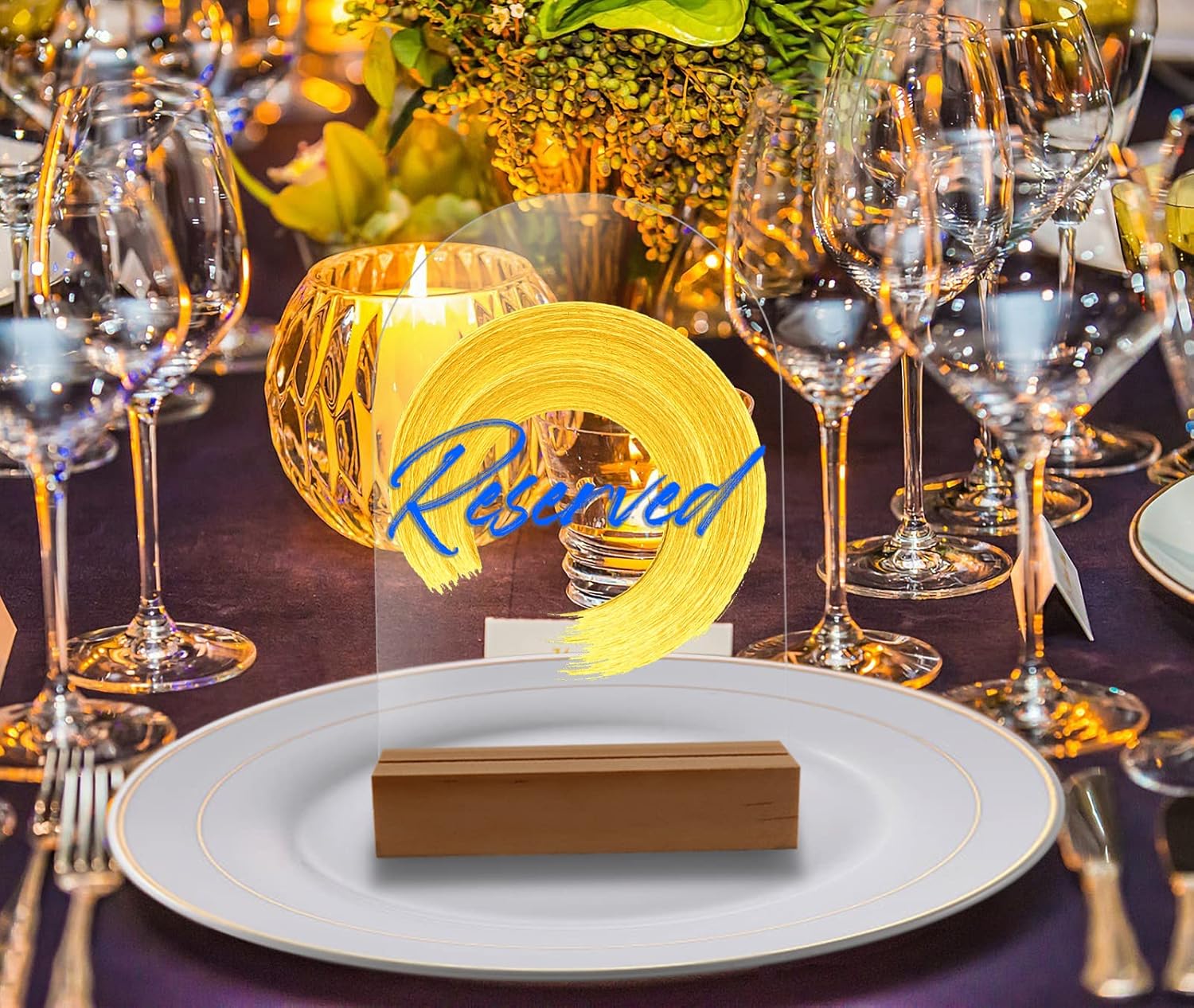 - Quality Material Adopted - Our blank acrylic signs are made of high quality 1/8” thick clear acrylic. Table number stands are made of natural pine wood material. The acrylic blanks with stand are precisely cut with clean lines and polished with smooth edges. Durable for long time use. It won't easily leave scratches on the surface.