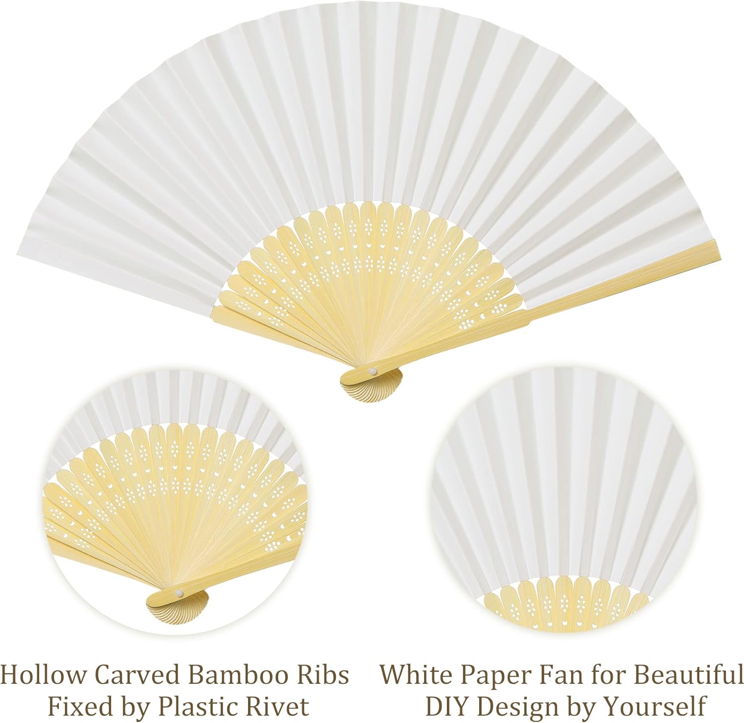 - Package Includes: You will receive 50 pieces of white paper hand fans, and each folding fan is well protected in OPP individual package.
